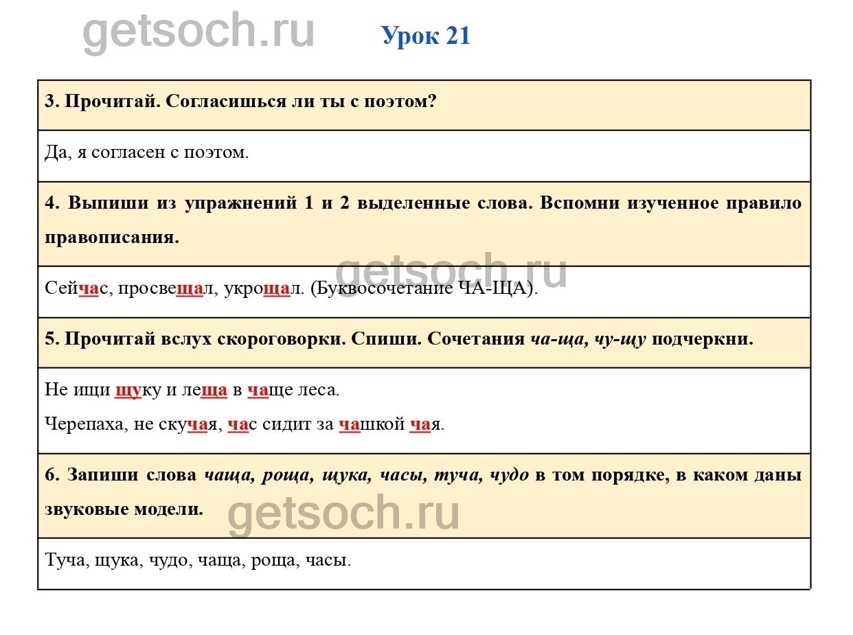 5. Прочитай вслух скороговорки. Спиши. Сочетания ча-ща, чу-щу подчеркни.