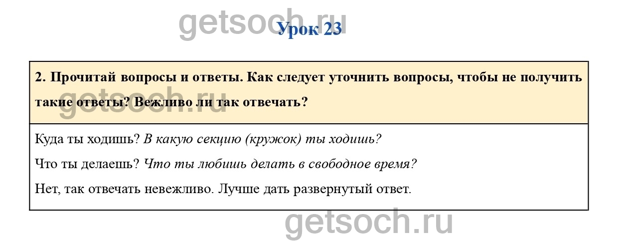 2. Прочитай вопросы и ответы. Как следует уточнить вопросы, чтобы не получить такие ответы? Вежливо ли так отвечать?