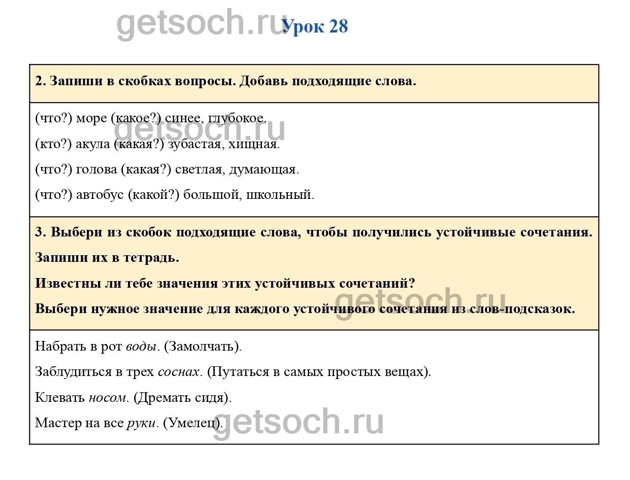 2. Запиши в скобках вопросы. Добавь подходящие слова.