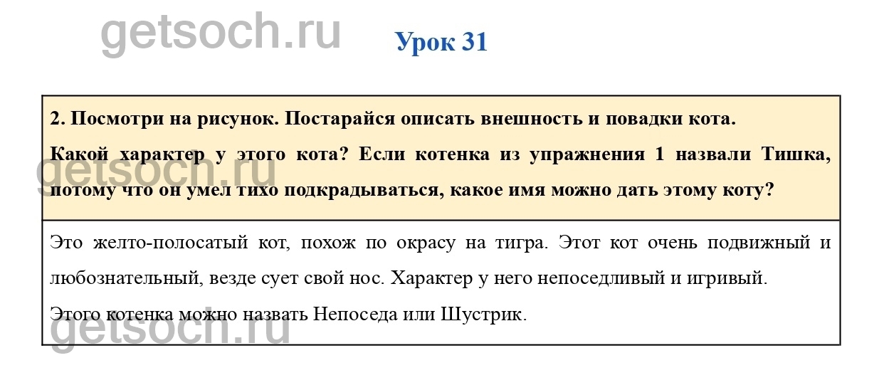 “2. Посмотри на рисунок. Постарайся описать внешность и повадки кота.