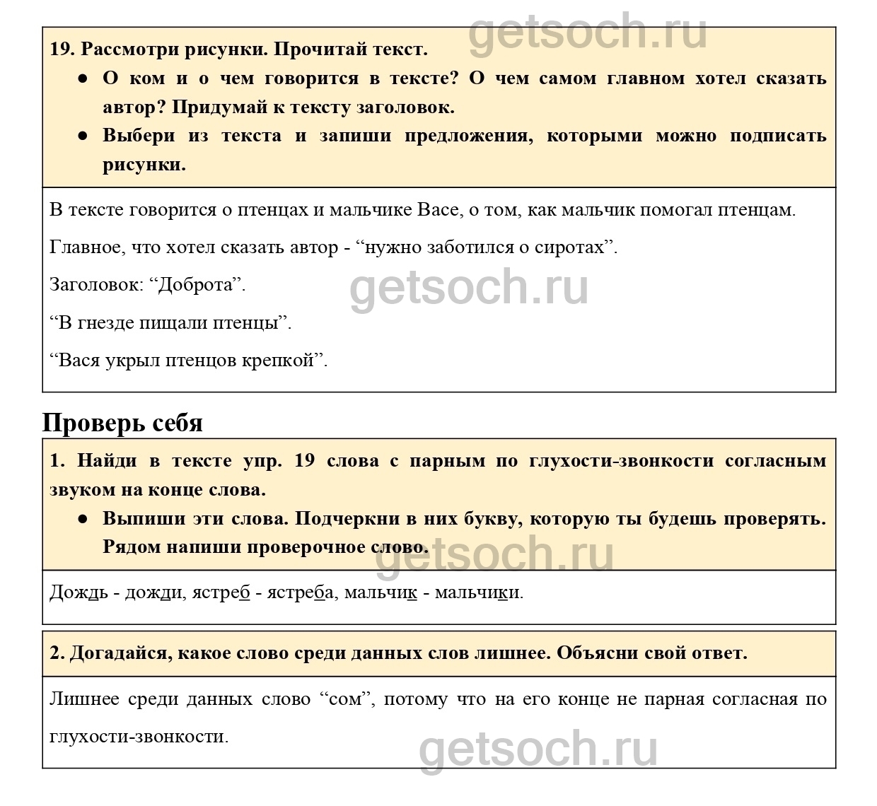 1. Найди в тексте упр. 19 слова с парным по глухости-звонкости согласным звуком на конце слова.