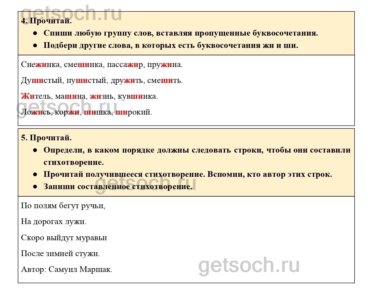 Подбери другие слова, в которых есть буквосочетания жи и ши.