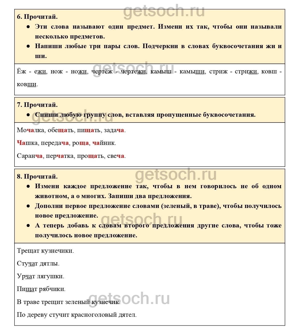 Спиши любую группу слов, вставляя пропущенные буквосочетания.
