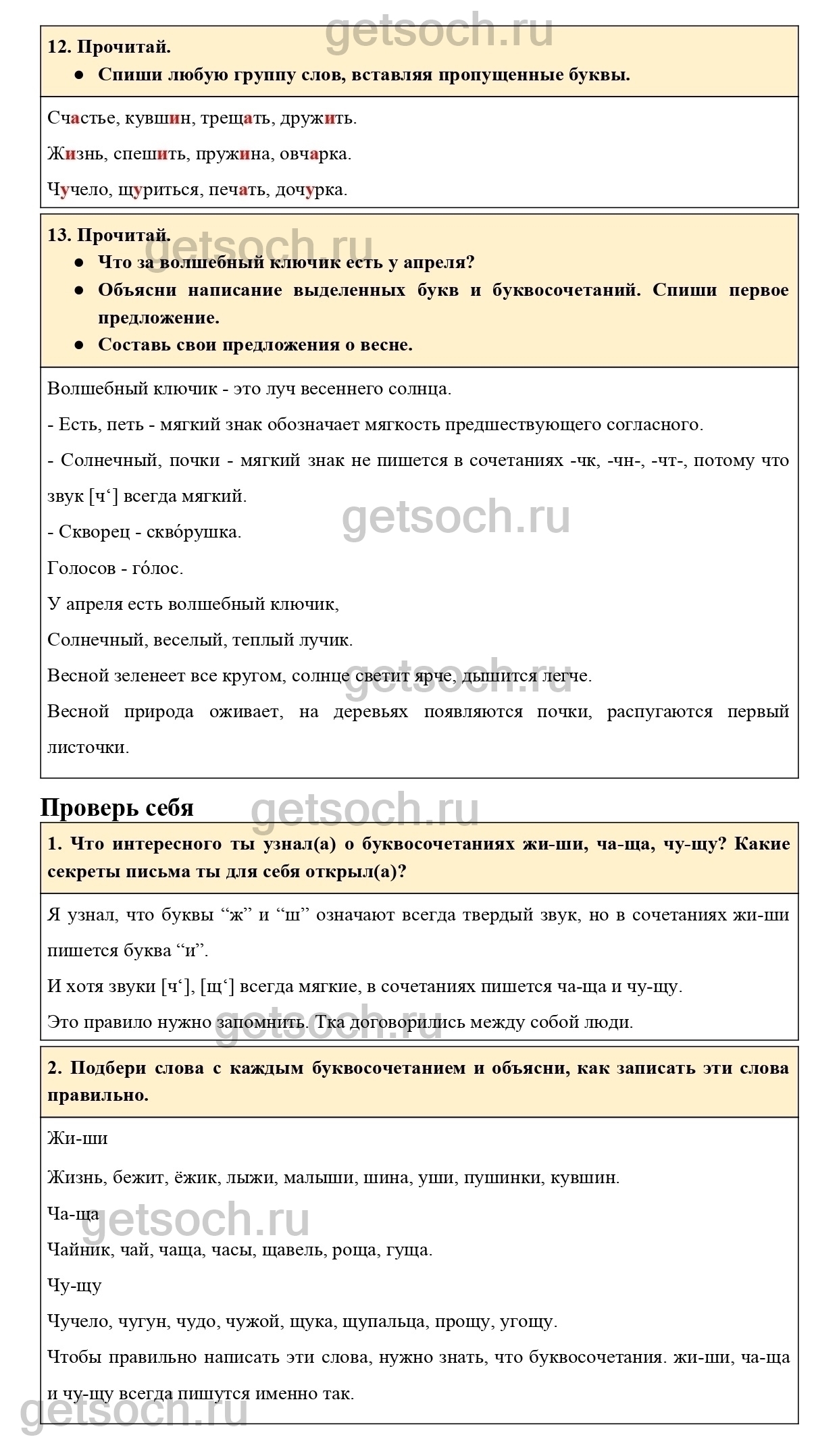 1. Что интересного ты узнал(а) о буквосочетаниях жи-ши, ча-ща, чу-щу? Какие секреты письма ты для себя открыл(а)?