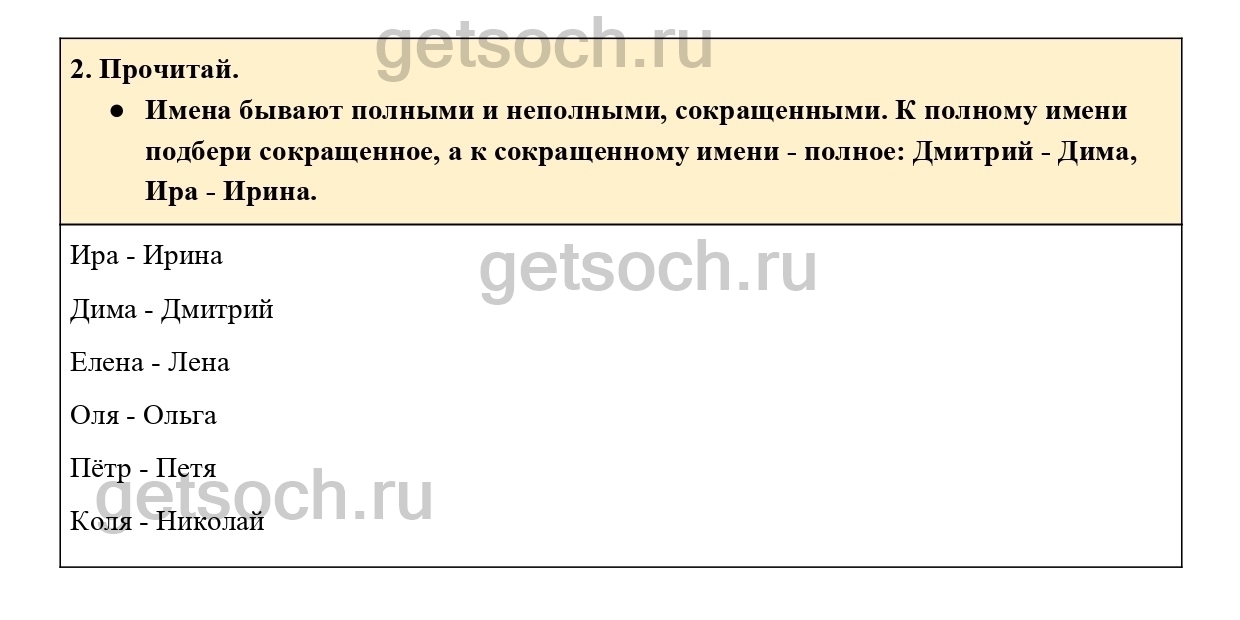 Имена бывают полными и неполными, сокращенными. К полному имени подбери сокращенное, а к сокращенному имени – полное: Дмитрий – Дима, Ира – Ирина.