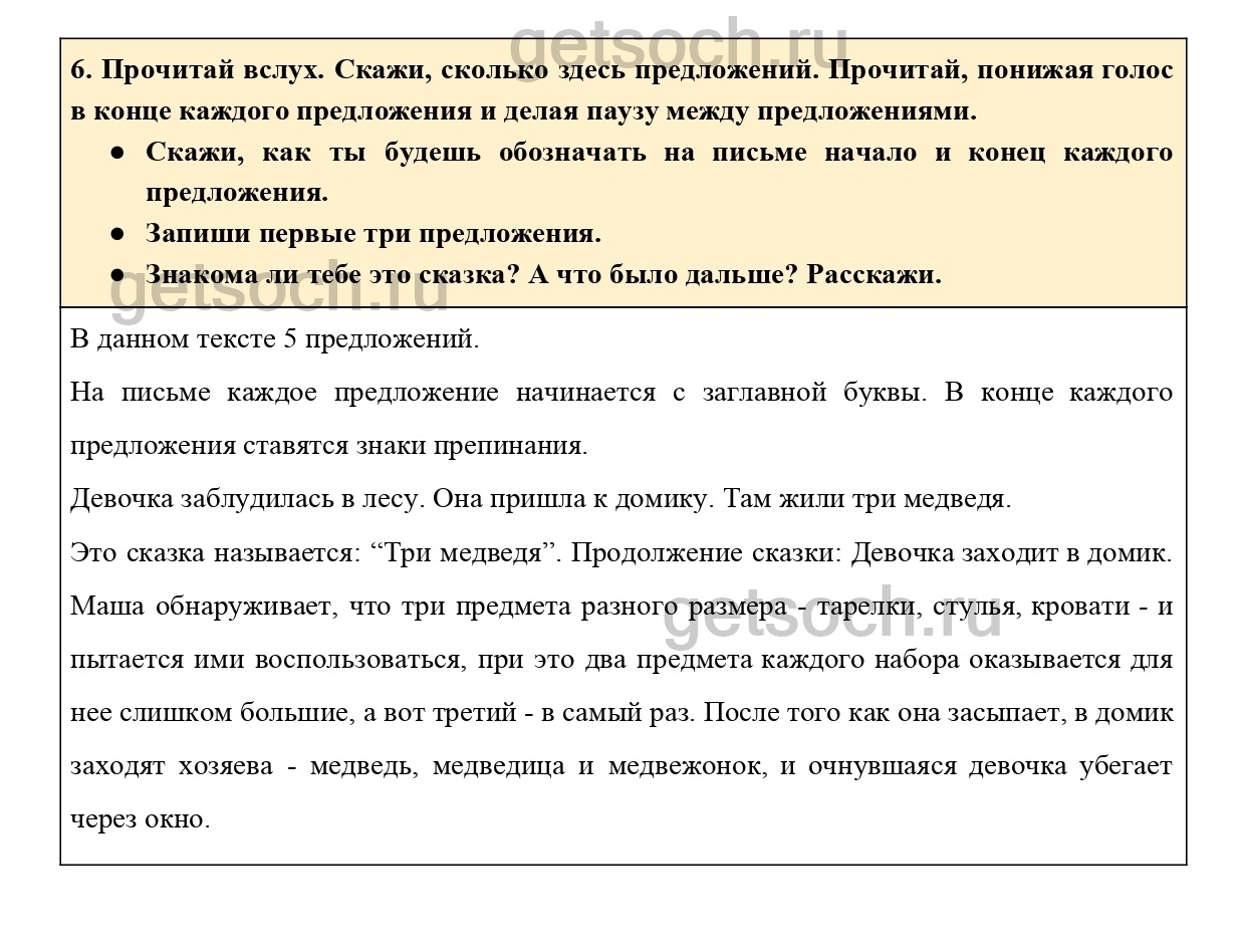 6. Прочитай вслух. Скажи, сколько здесь предложений. Прочитай, понижая голос в конце каждого предложения и делая паузу между предложениями.