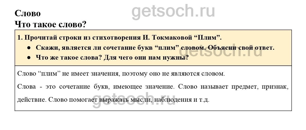 1. Прочитай строки из стихотворения И. Токмаковой “Плим”.