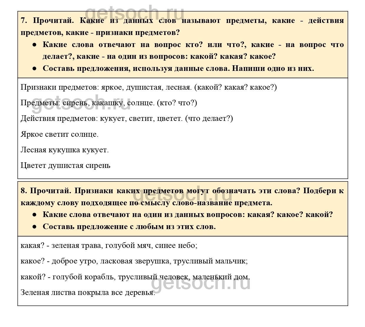 7. Прочитай. Какие из данных слов называют предметы, какие – действия предметов, какие – признаки предметов?