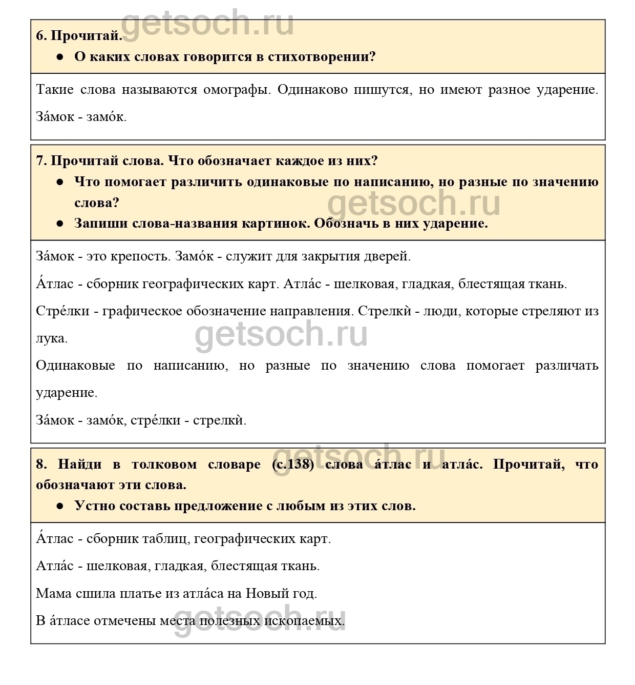 8. Найди в толковом словаре (с.138) слова áтлас и атлáс. Прочитай, что обозначают эти слова.
