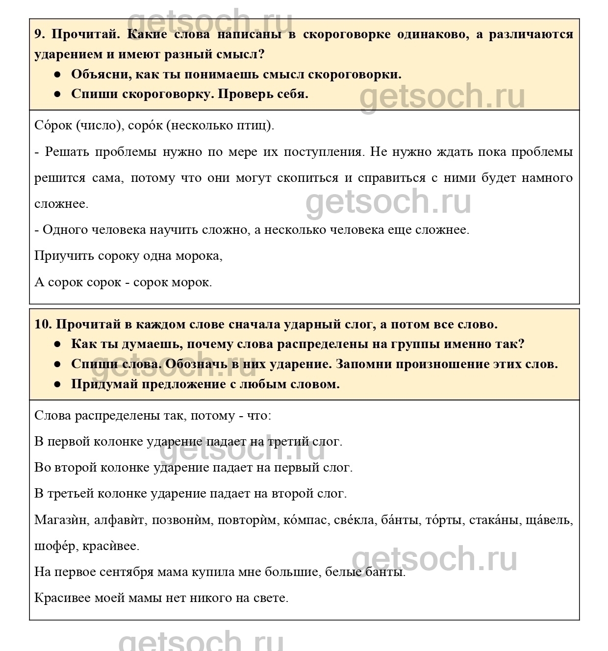 9. Прочитай. Какие слова написаны в скороговорке одинаково, а различаются ударением и имеют разный смысл?