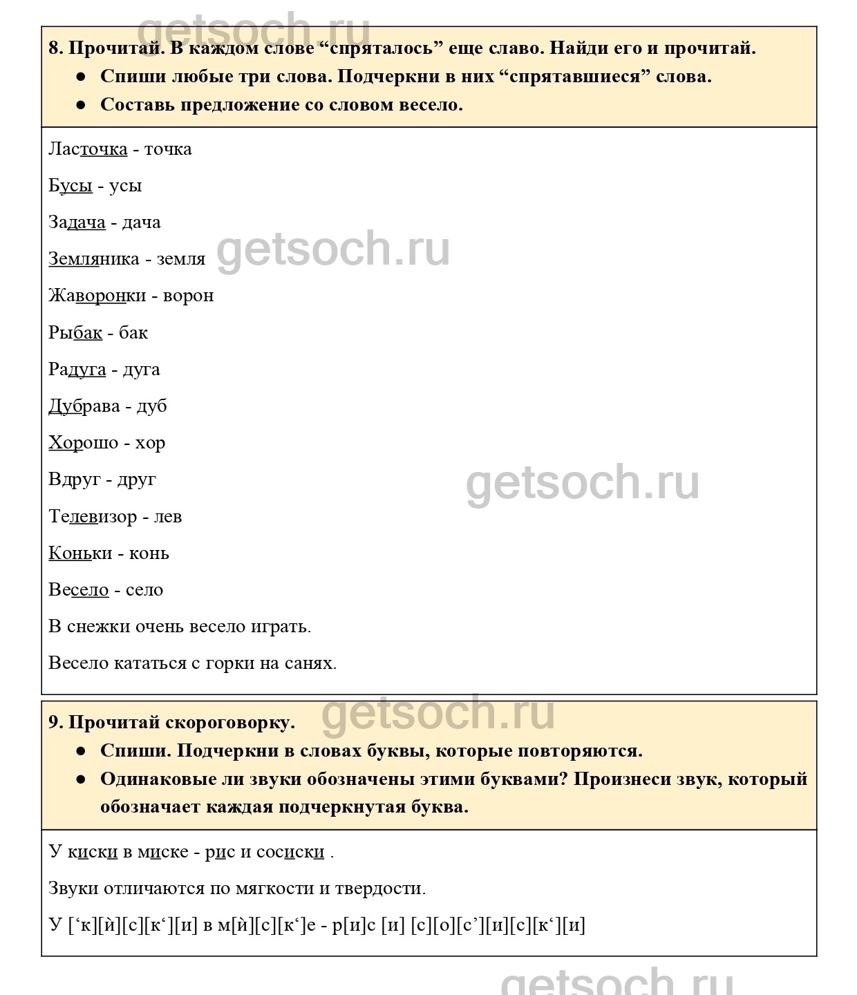 8. Прочитай. В каждом слове “спряталось” еще славо. Найди его и прочитай.