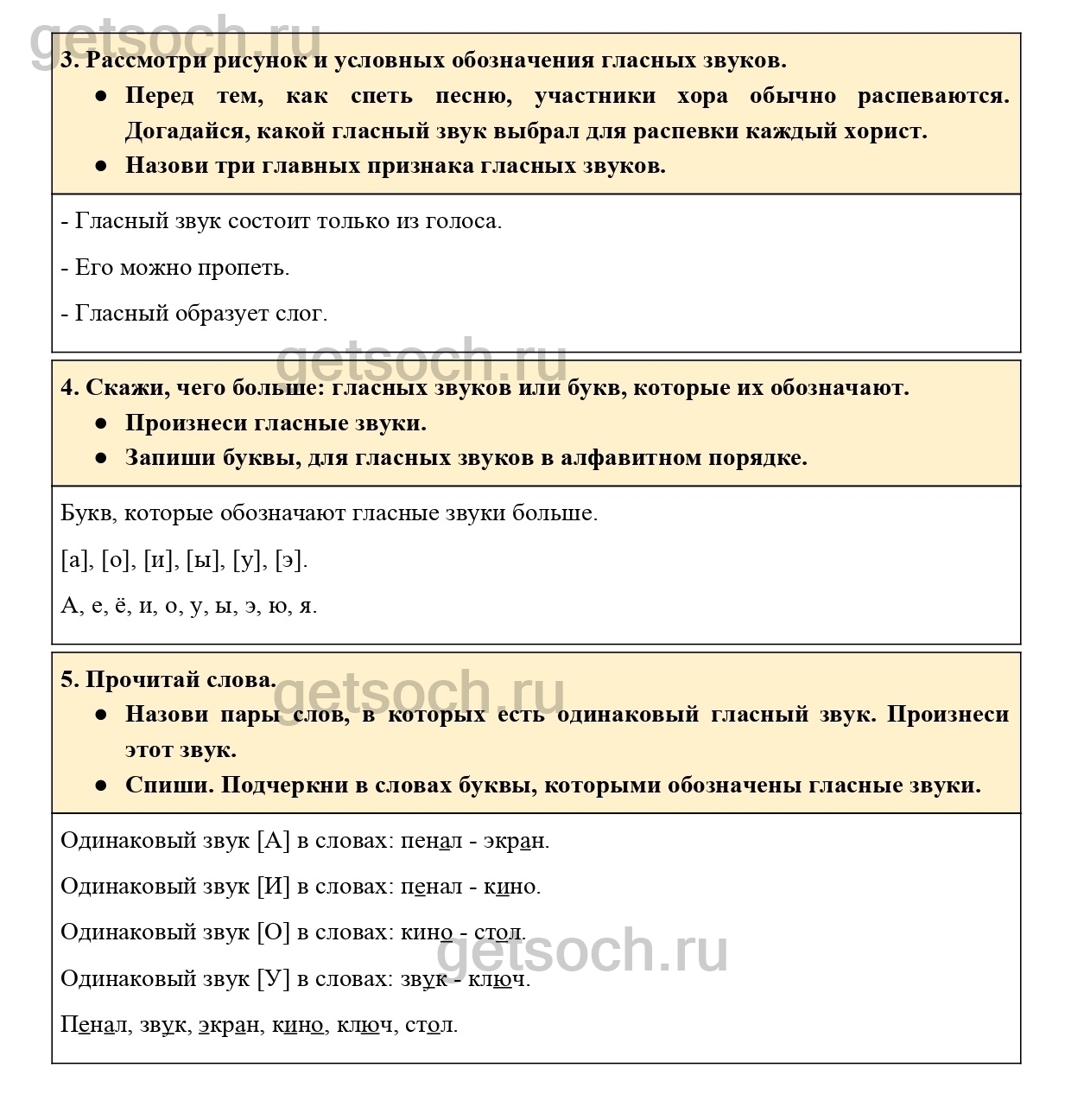 4. Скажи, чего больше: гласных звуков или букв, которые их обозначают.