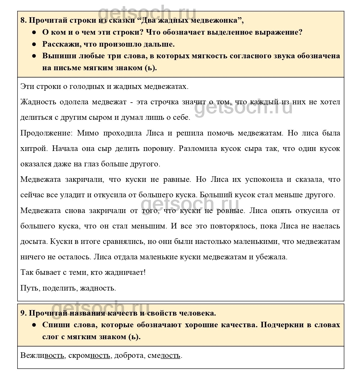 8. Прочитай строки из сказки “Два жадных медвежонка”,