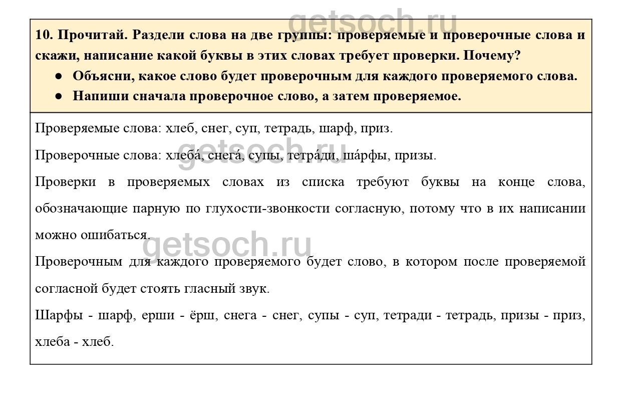 10. Прочитай. Раздели слова на две группы: проверяемые и проверочные слова и скажи, написание какой буквы в этих словах требует проверки. Почему?