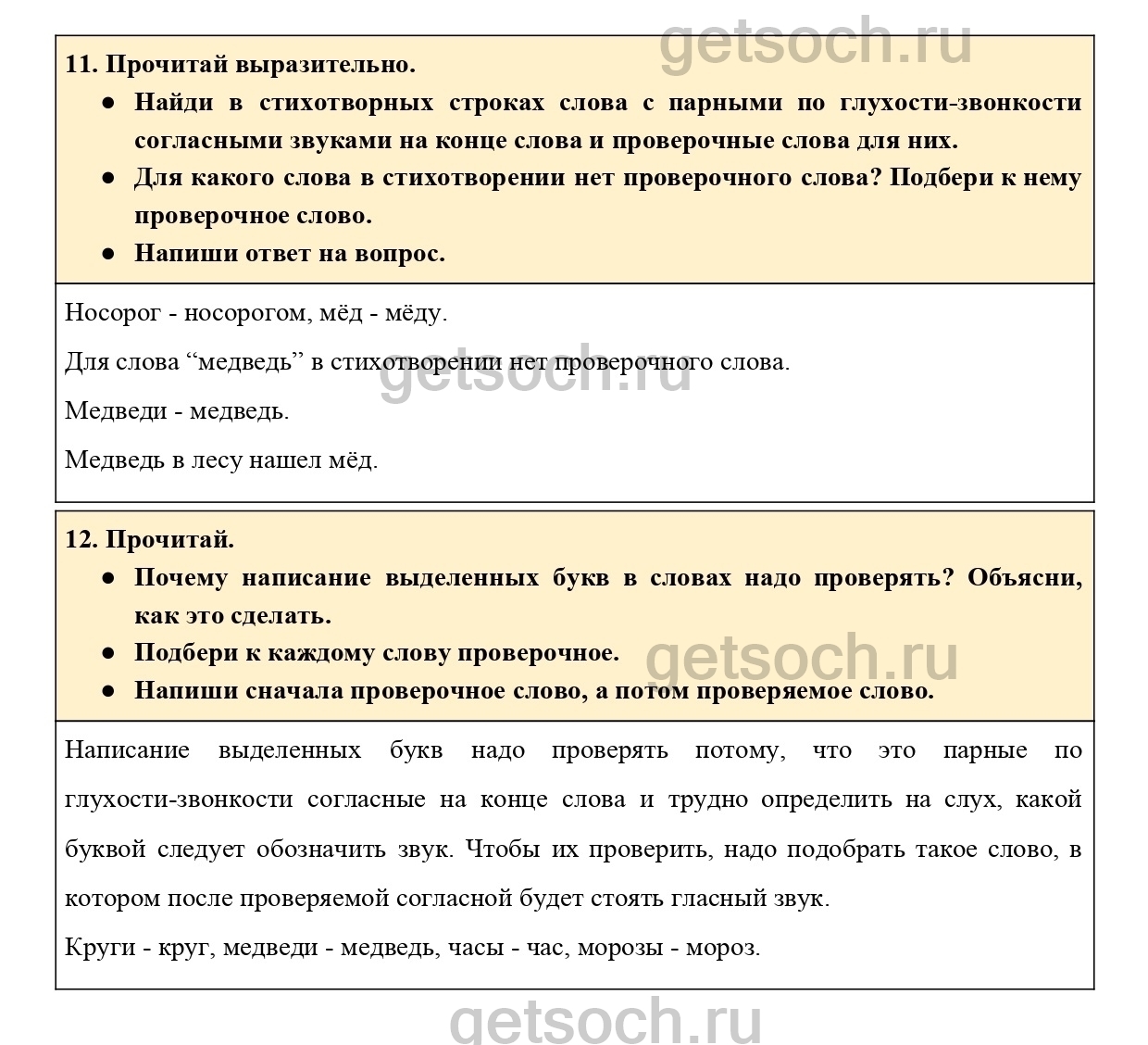 Найди в стихотворных строках слова с парными по глухости-звонкости согласными звуками на конце слова и проверочные слова для них.