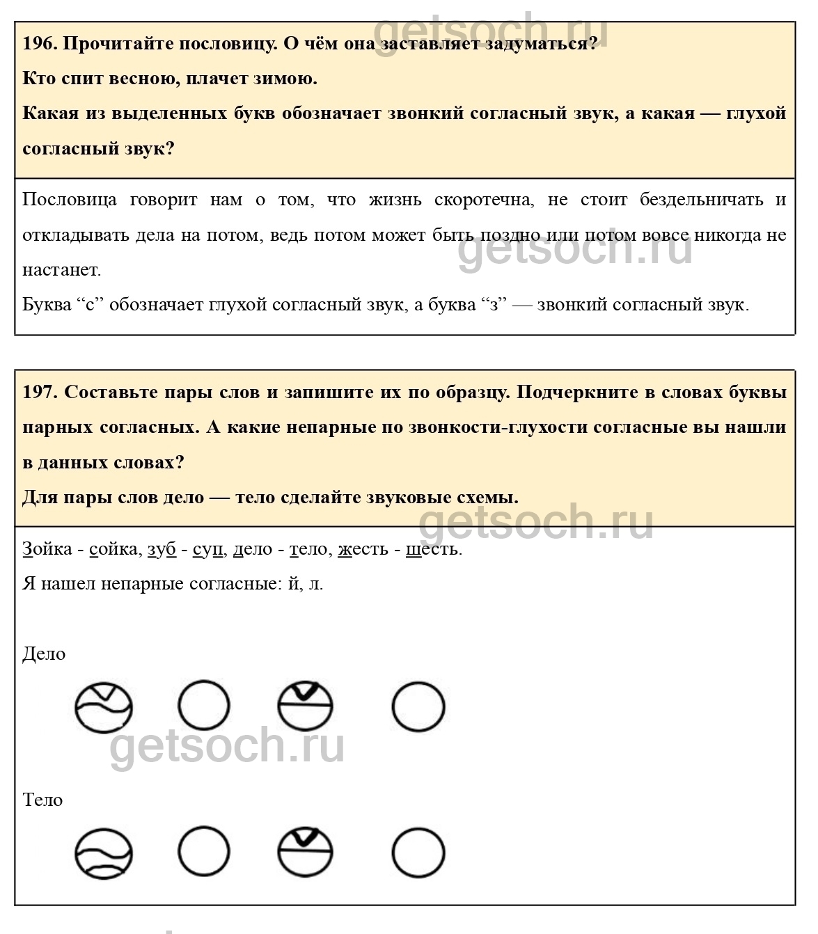 197. Составьте пары слов и запишите их по образцу. Подчеркните в словах буквы парных согласных. А какие непарные по звонкости-глухости согласные вы нашли в данных словах?