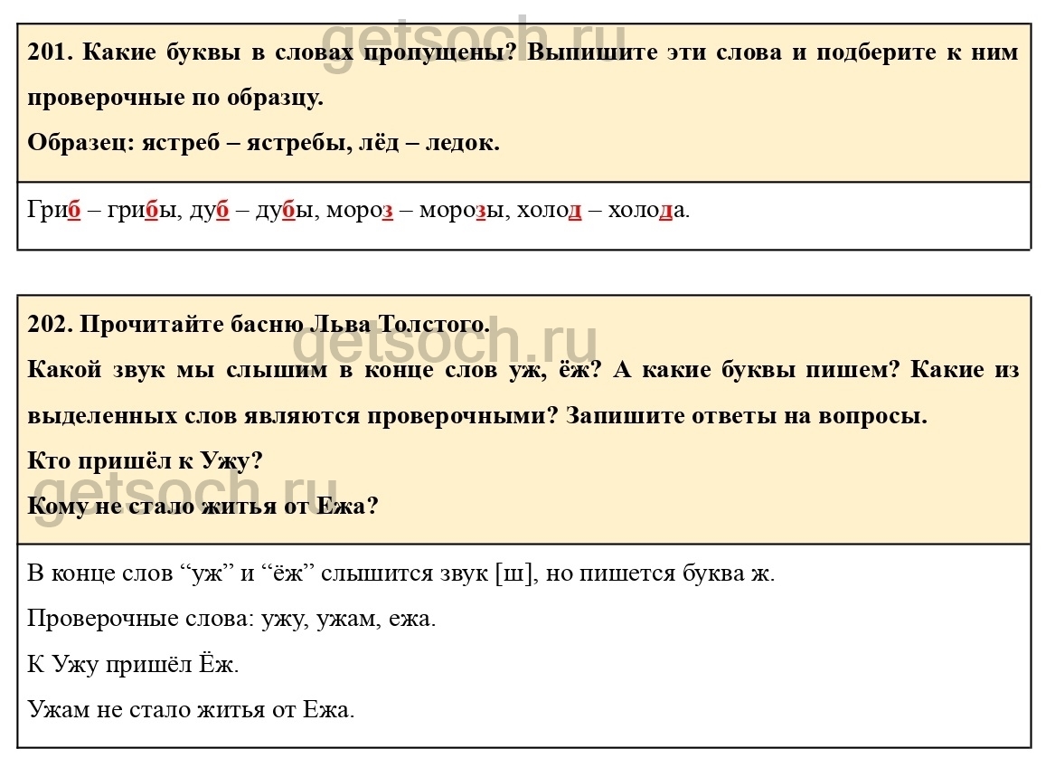 Какой звук мы слышим в конце слов уж, ёж? А какие буквы пишем? Какие из выделенных слов являются проверочными? Запишите ответы на вопросы.