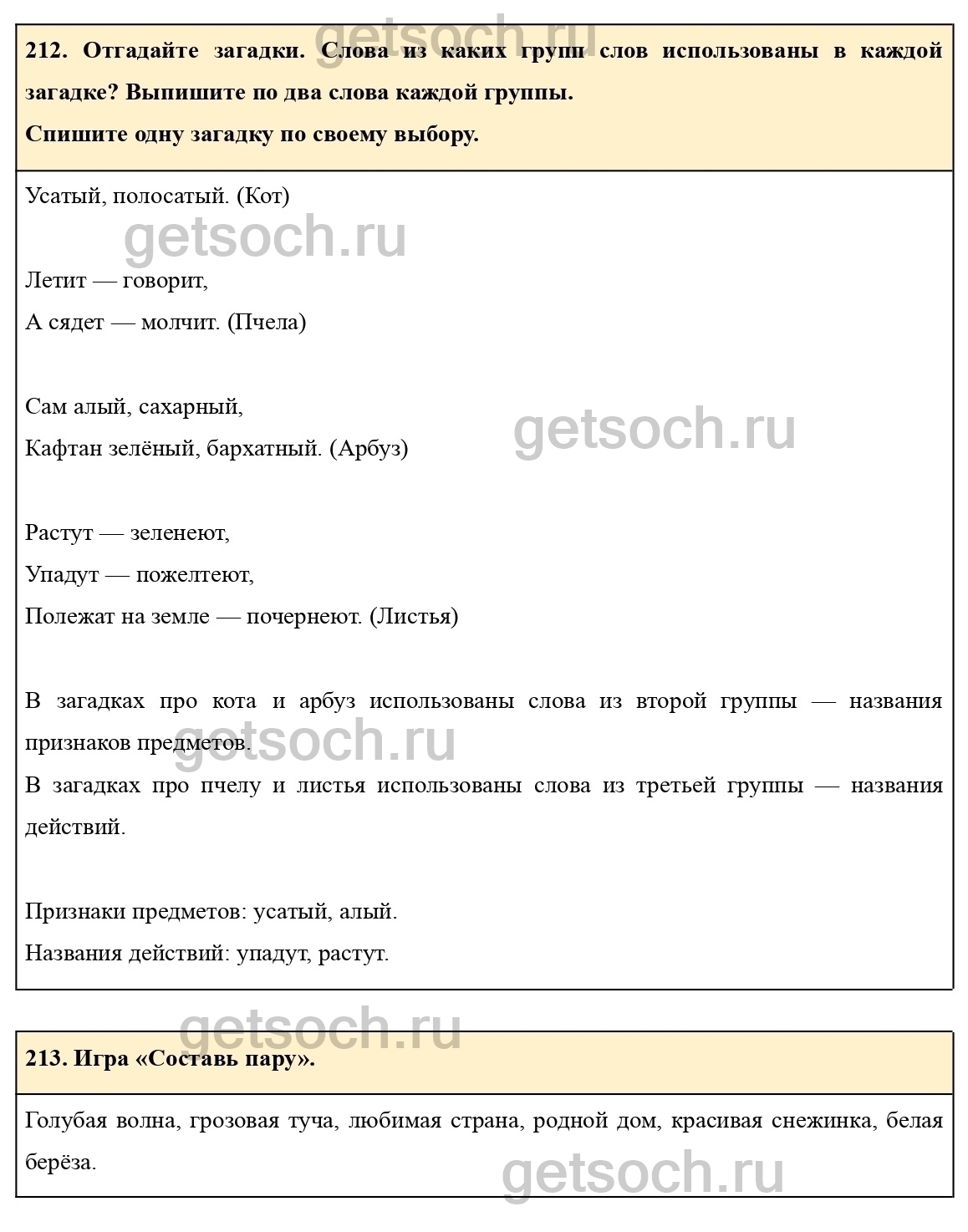 212. Отгадайте загадки. Слова из каких групп слов использованы в каждой загадке? Выпишите по два слова каждой группы.
