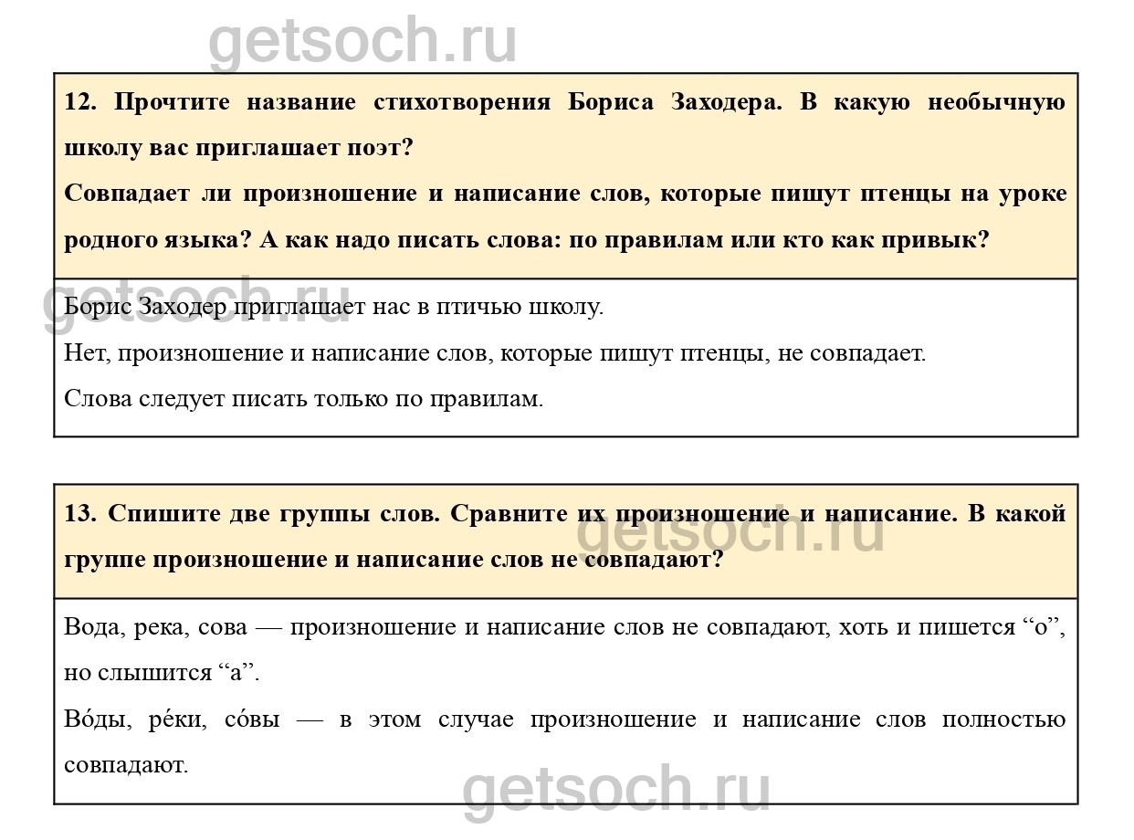 13. Спишите две группы слов. Сравните их произношение и написание. В какой группе произношение и написание слов не совпадают?
