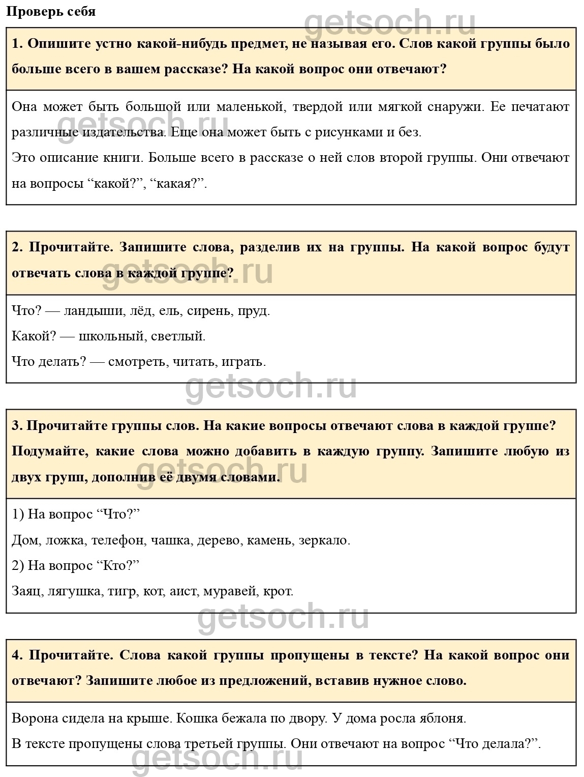 3. Прочитайте группы слов. На какие вопросы отвечают слова в каждой группе?
