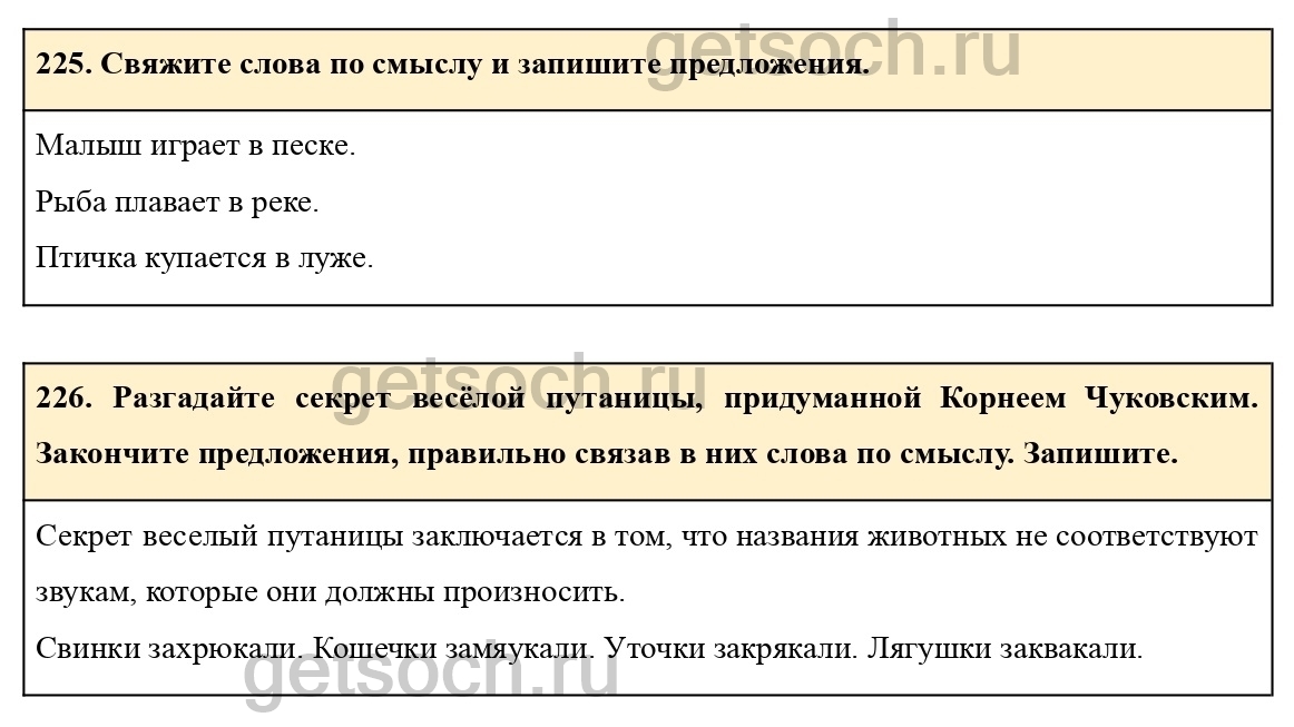 226. Разгадайте секрет весёлой путаницы, придуманной Корнеем Чуковским. Закончите предложения, правильно связав в них слова по смыслу. Запишите.