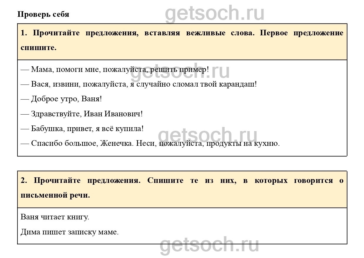 1. Прочитайте предложения, вставляя вежливые слова. Первое предложение спишите.