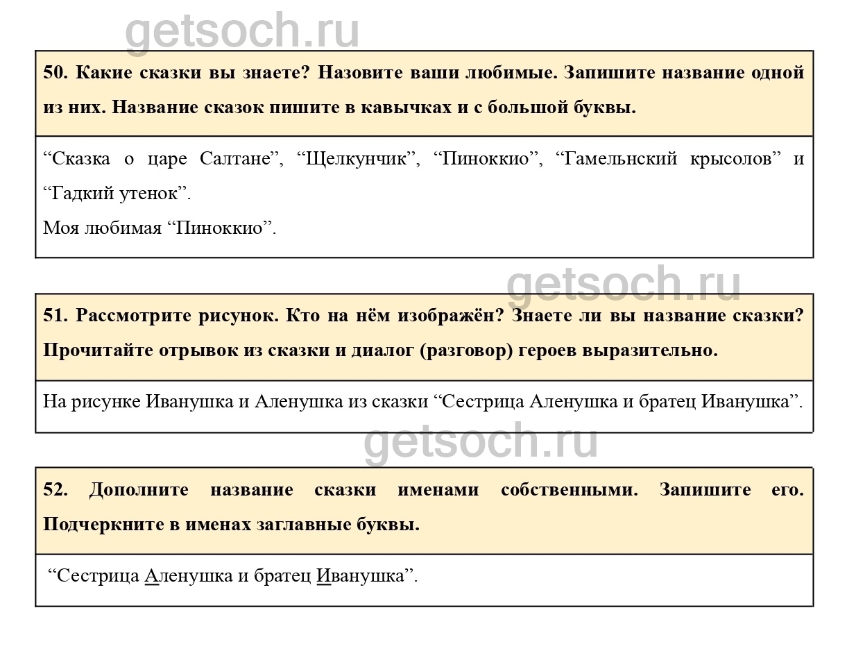 50. Какие сказки вы знаете? Назовите ваши любимые. Запишите название одной из них. Название сказок пишите в кавычках и с большой буквы.