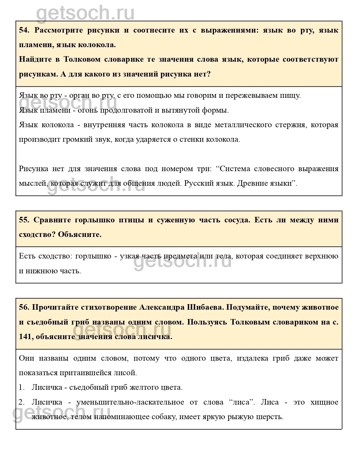 56. Прочитайте стихотворение Александра Шибаева. Подумайте, почему животное и съедобный гриб названы одним словом. Пользуясь Толковым словариком на с. 141, объясните значения слова лисичка.