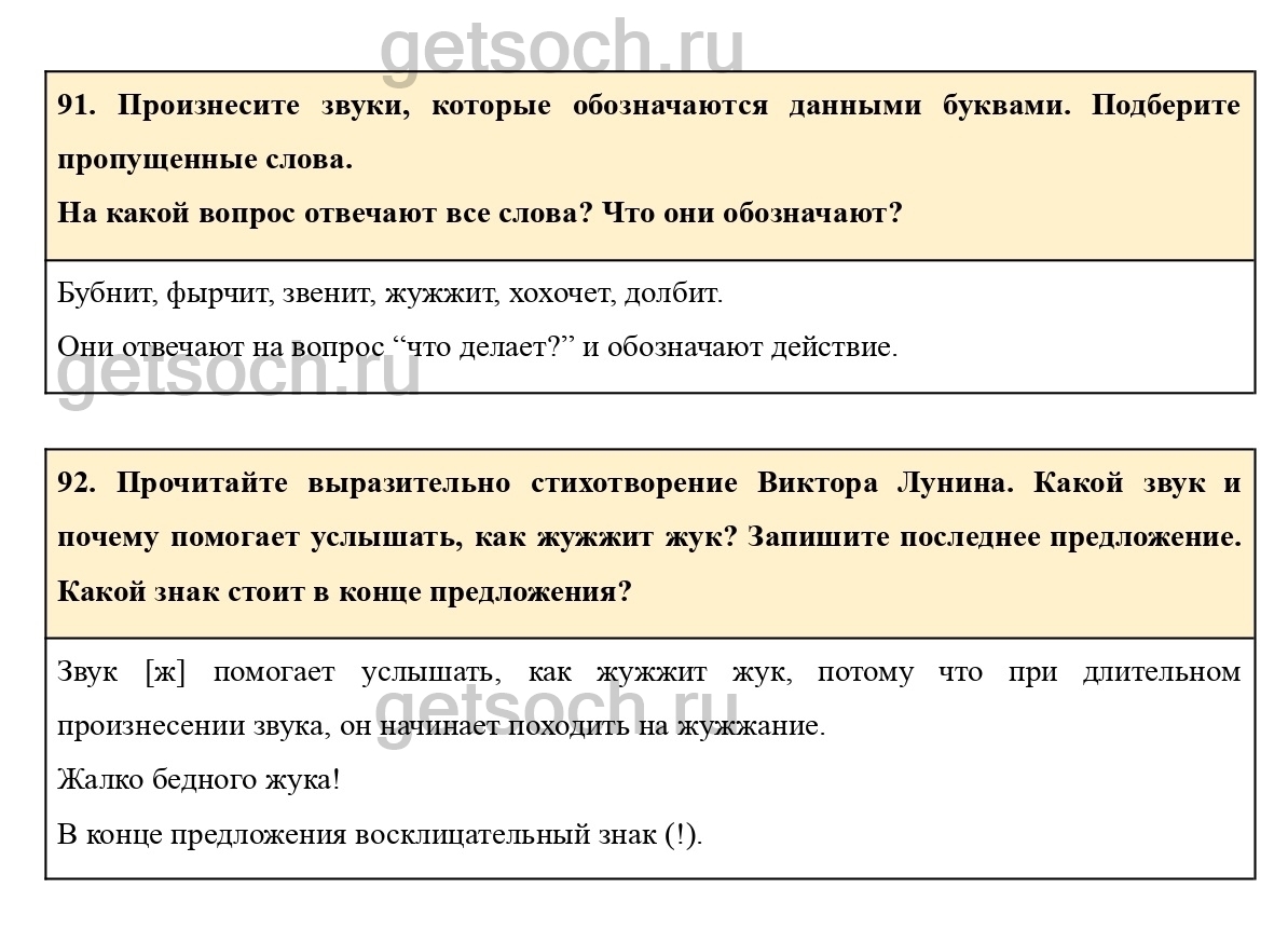 92. Прочитайте выразительно стихотворение Виктора Лунина. Какой звук и почему помогает услышать, как жужжит жук? Запишите последнее предложение. Какой знак стоит в конце предложения?