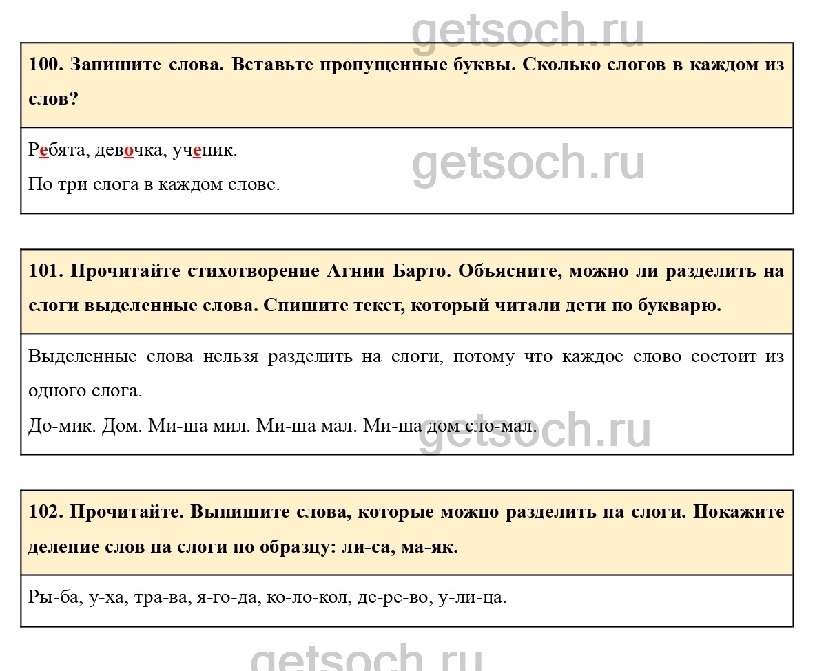 101. Прочитайте стихотворение Агнии Барто. Объясните, можно ли разделить на слоги выделенные слова. Спишите текст, который читали дети по букварю.