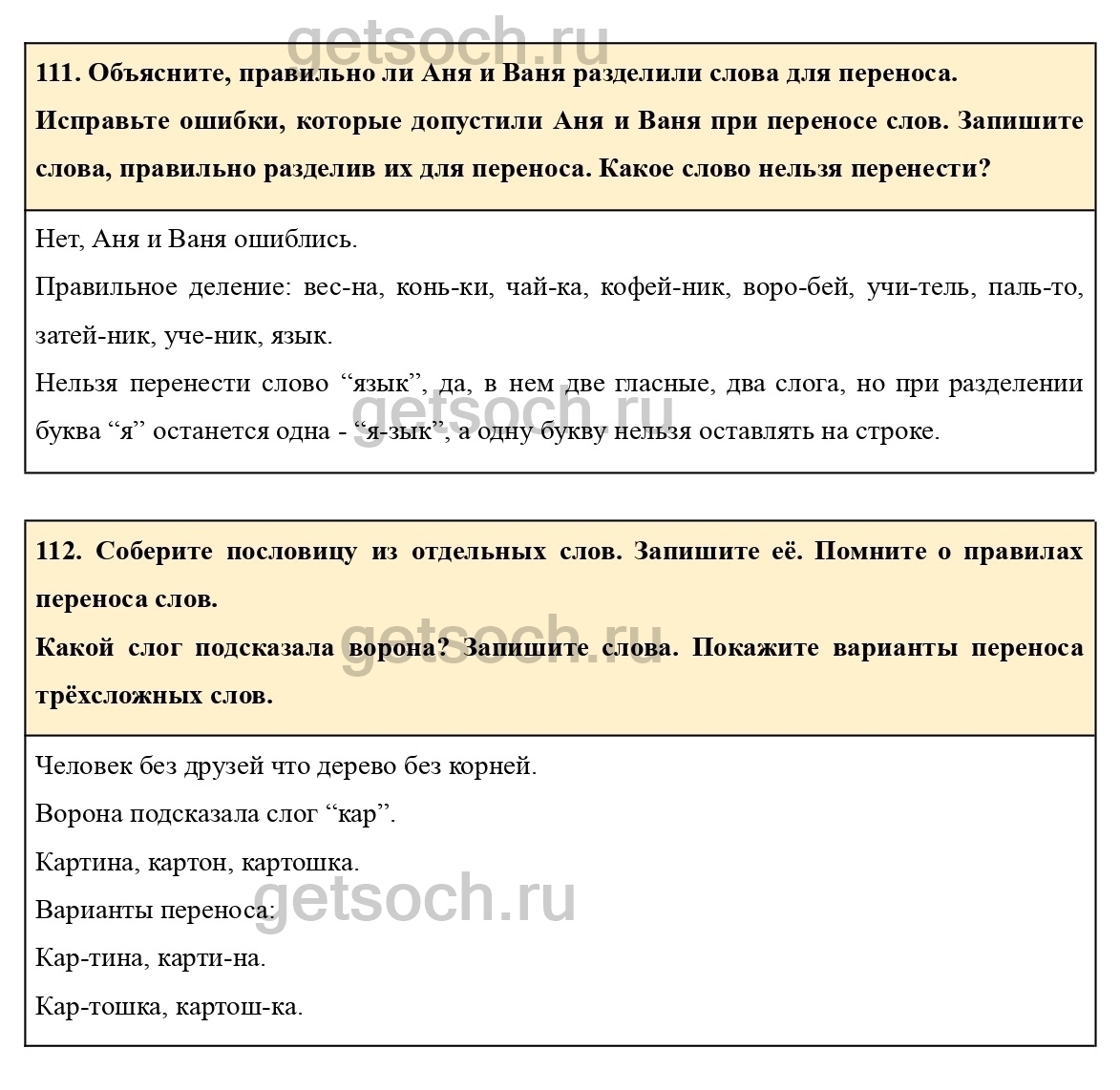 111. Объясните, правильно ли Аня и Ваня разделили слова для переноса.