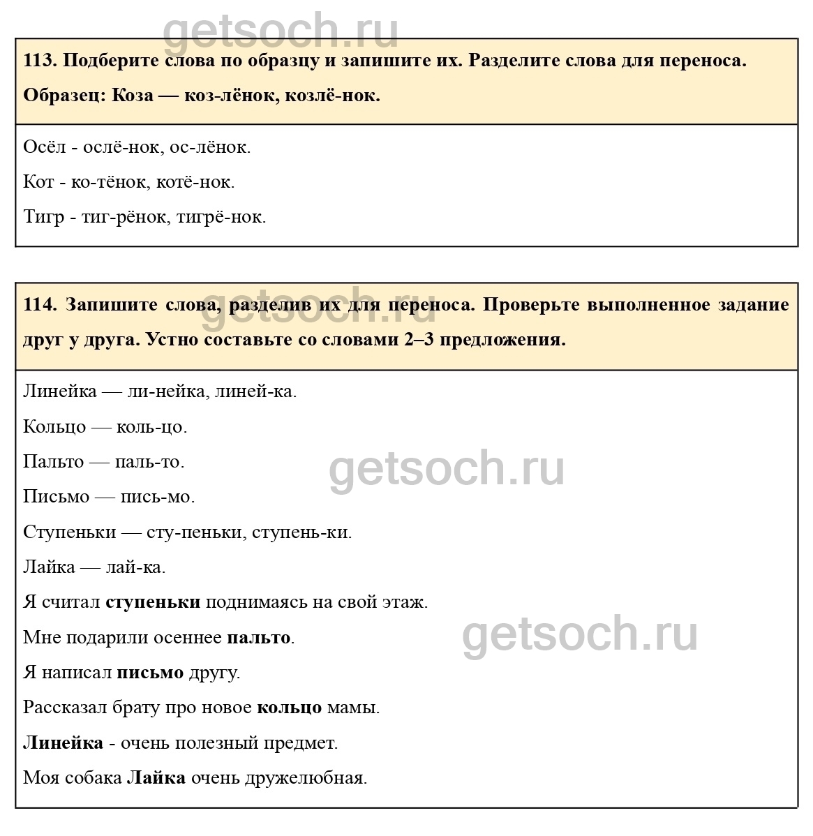 114. Запишите слова, разделив их для переноса. Проверьте выполненное задание друг у друга. Устно составьте со словами 2–3 предложения.