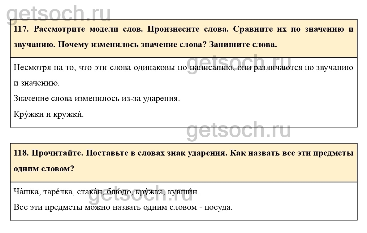 117. Рассмотрите модели слов. Произнесите слова. Сравните их по значению и звучанию. Почему изменилось значение слова? Запишите слова.