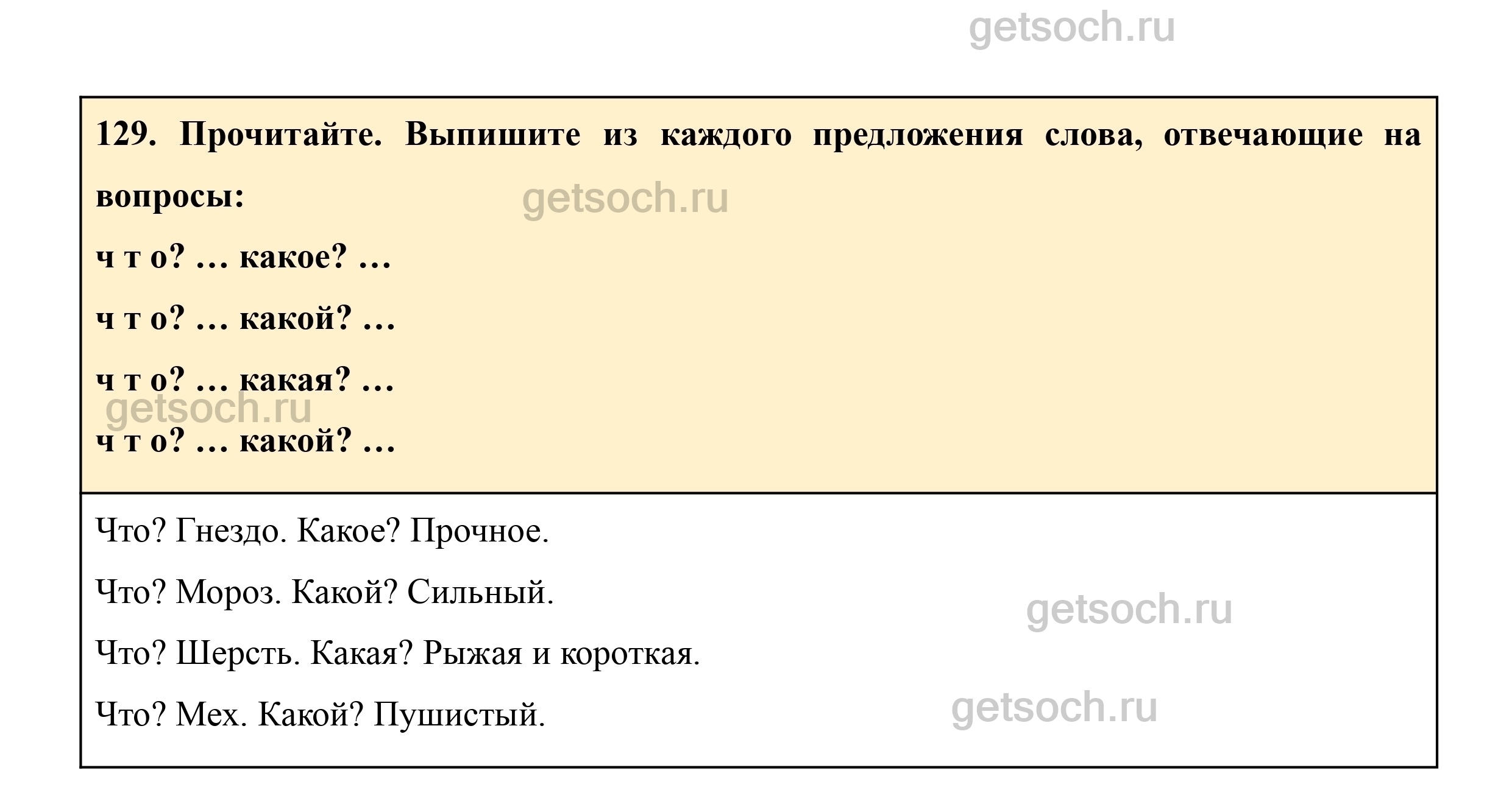 129. Прочитайте. Выпишите из каждого предложения слова, отвечающие на вопросы:
