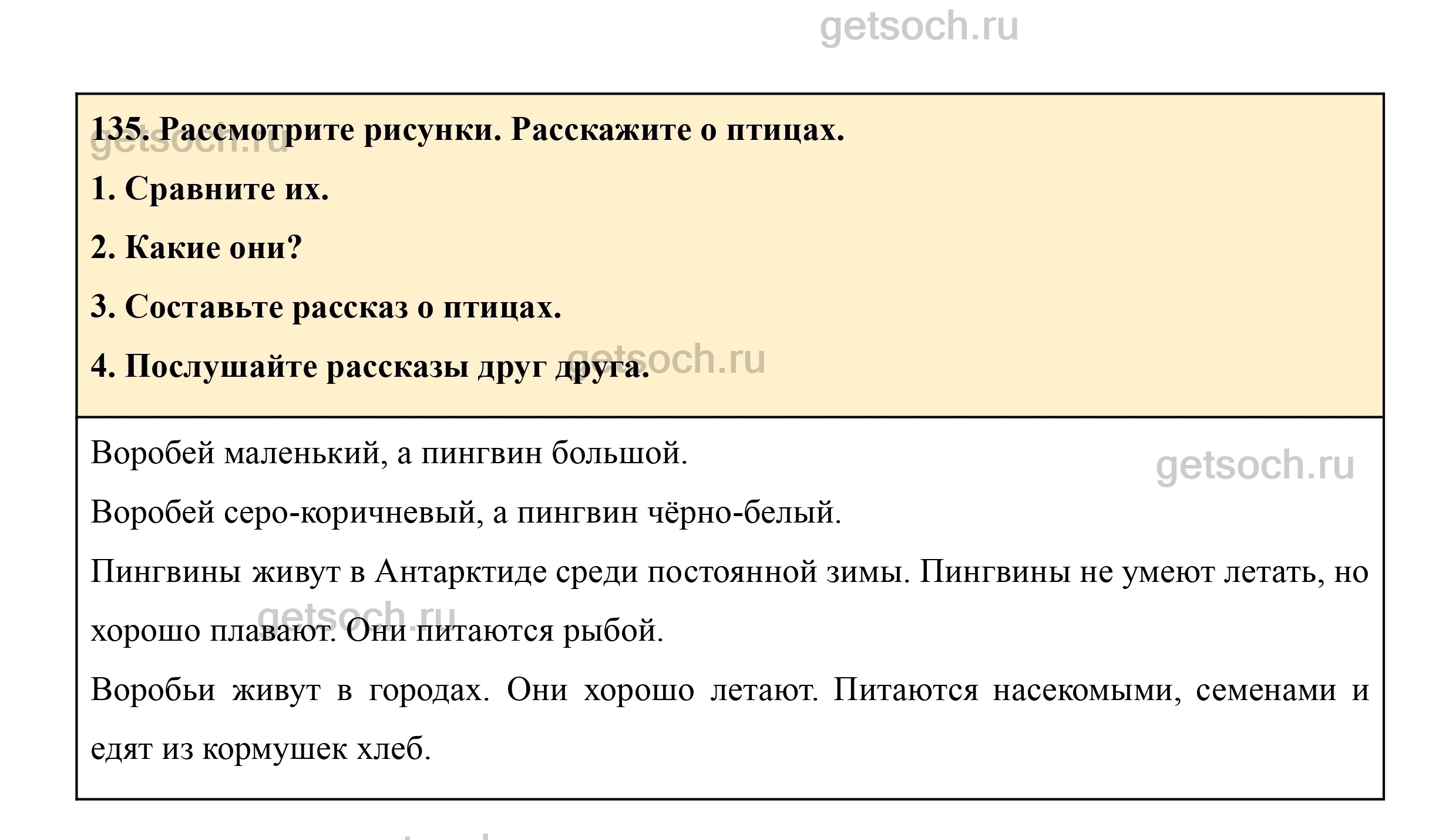 135. Рассмотрите рисунки. Расскажите о птицах.