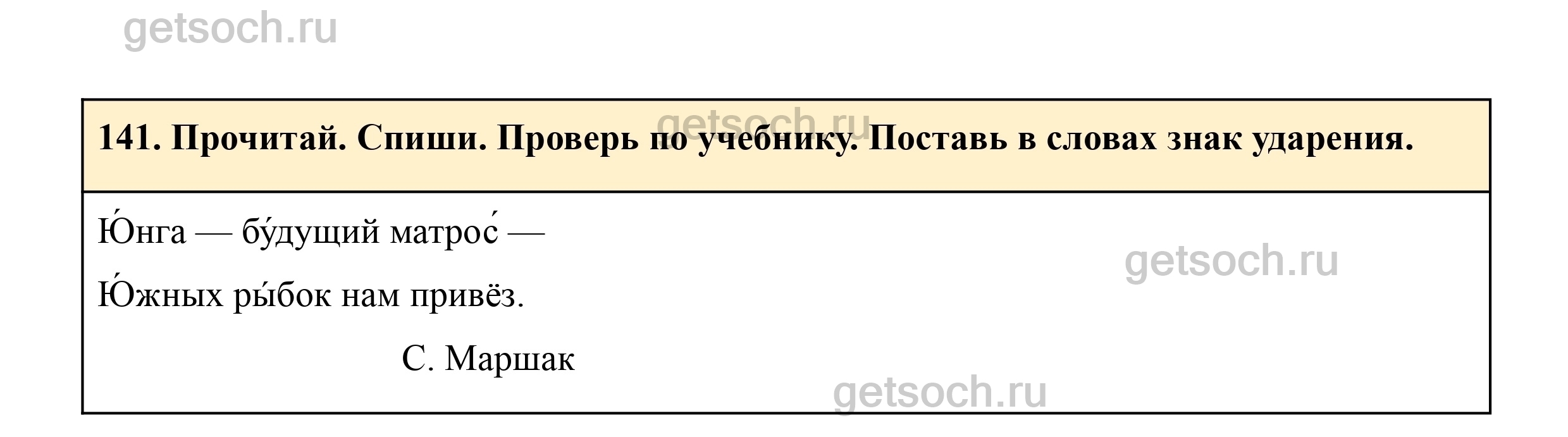 141. Прочитай. Спиши. Проверь по учебнику. Поставь в словах знак ударения.