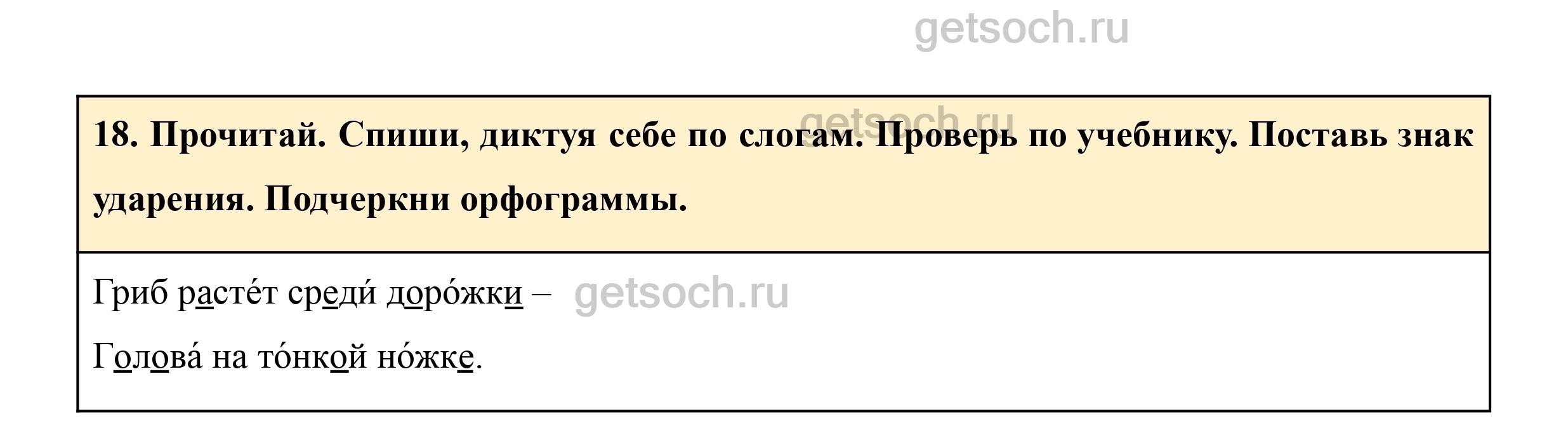 18. Прочитай. Спиши, диктуя себе по слогам. Проверь по учебнику. Поставь знак ударения. Подчеркни орфограммы.