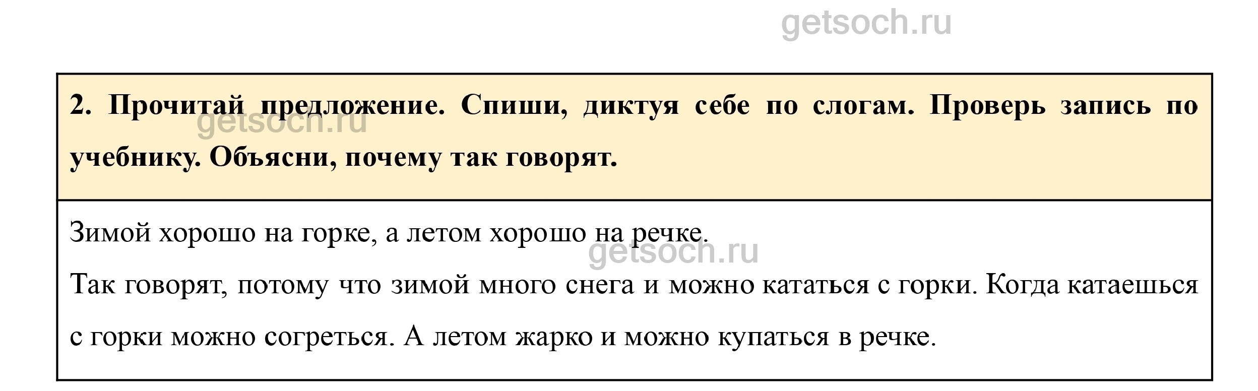 2. Прочитай предложение. Спиши, диктуя себе по слогам. Проверь запись по учебнику. Объясни, почему так говорят.