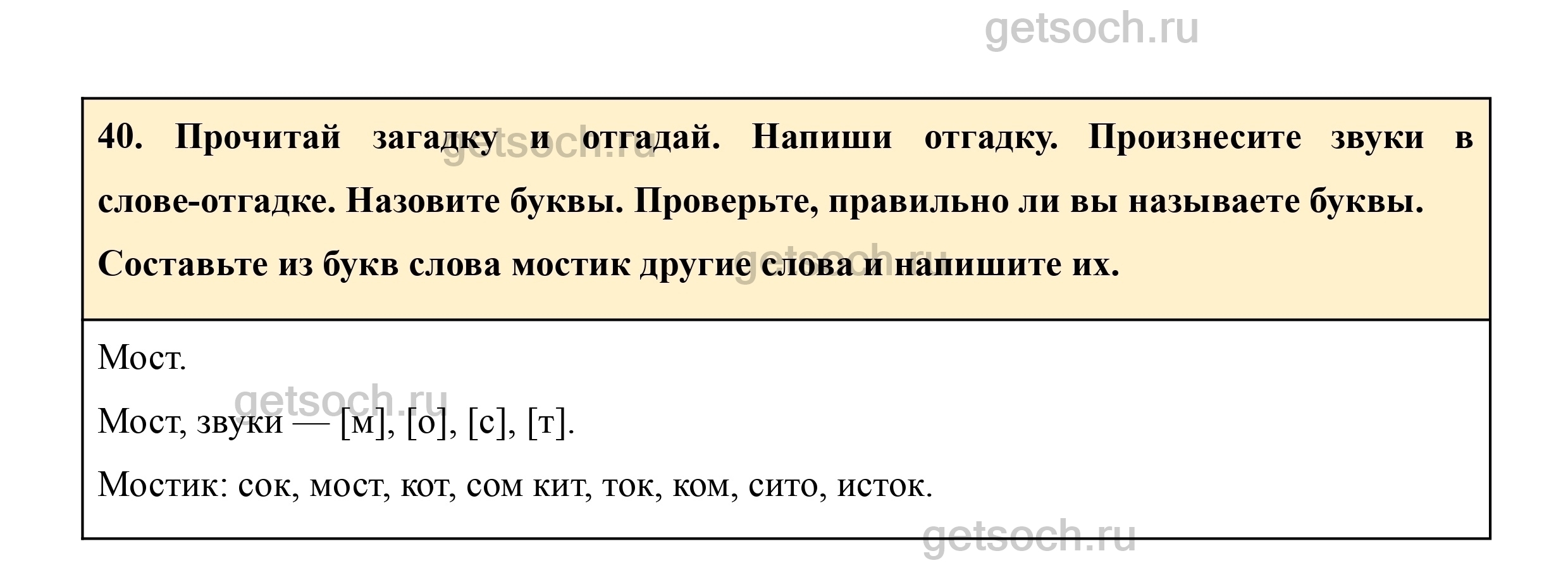 40. Прочитай загадку и отгадай. Напиши отгадку. Произнесите звуки в слове-отгадке. Назовите буквы. Проверьте, правильно ли вы называете буквы.