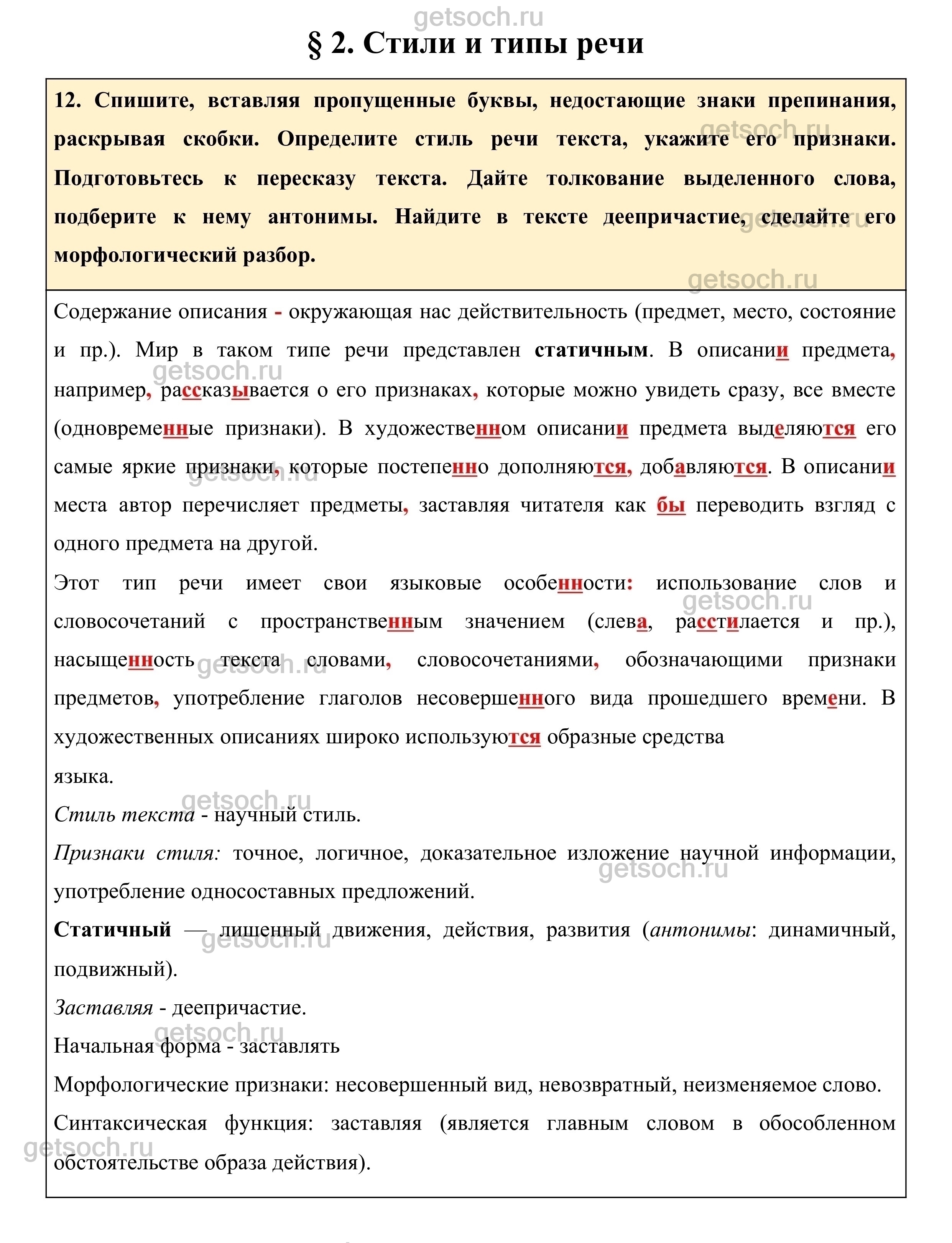 Упражнение 12- ГДЗ по Русскому языку для 10-11 классов Учебник Греков, Крючков, Чешко
