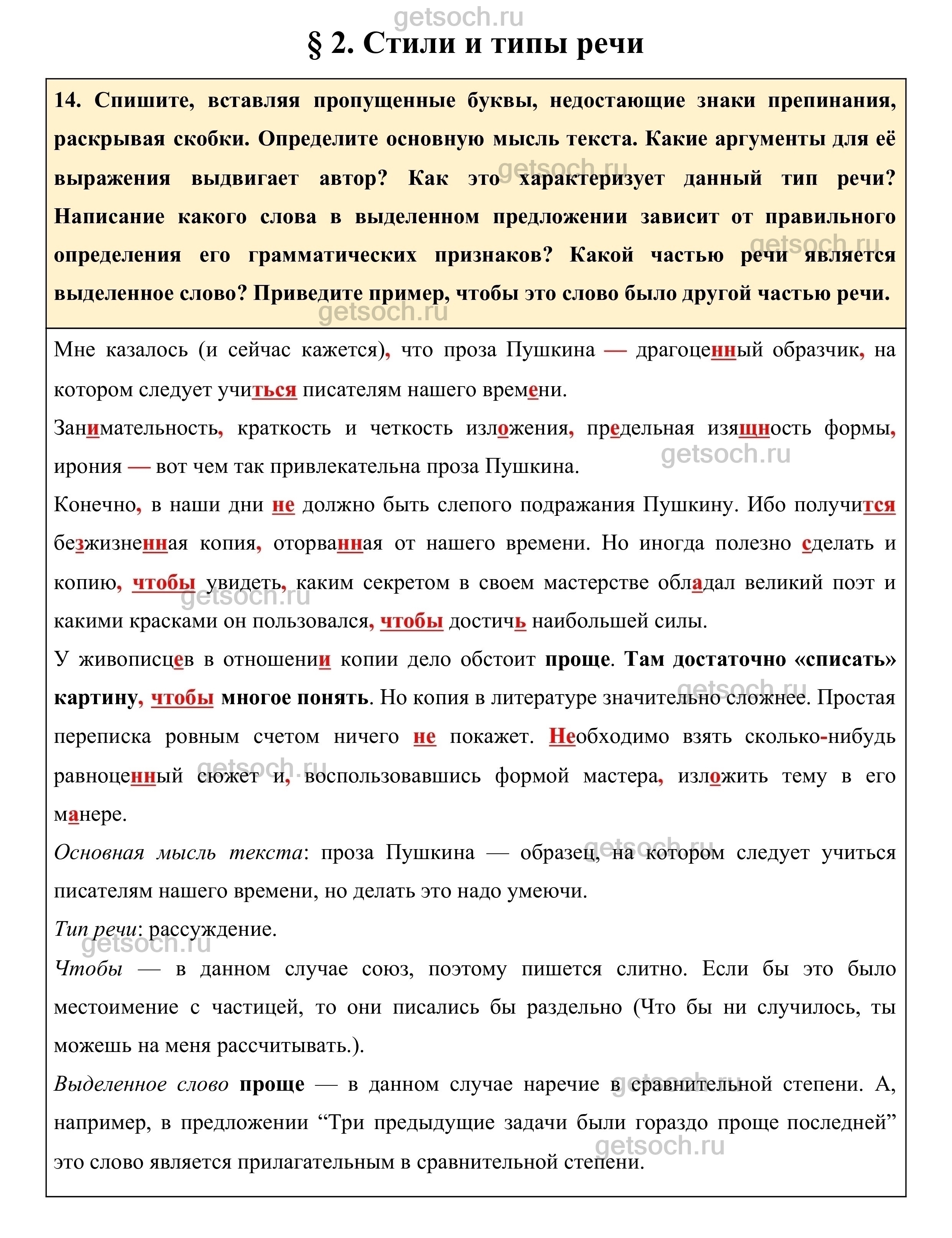 Упражнение 14- ГДЗ по Русскому языку для 10-11 классов Учебник Греков, Крючков, Чешко