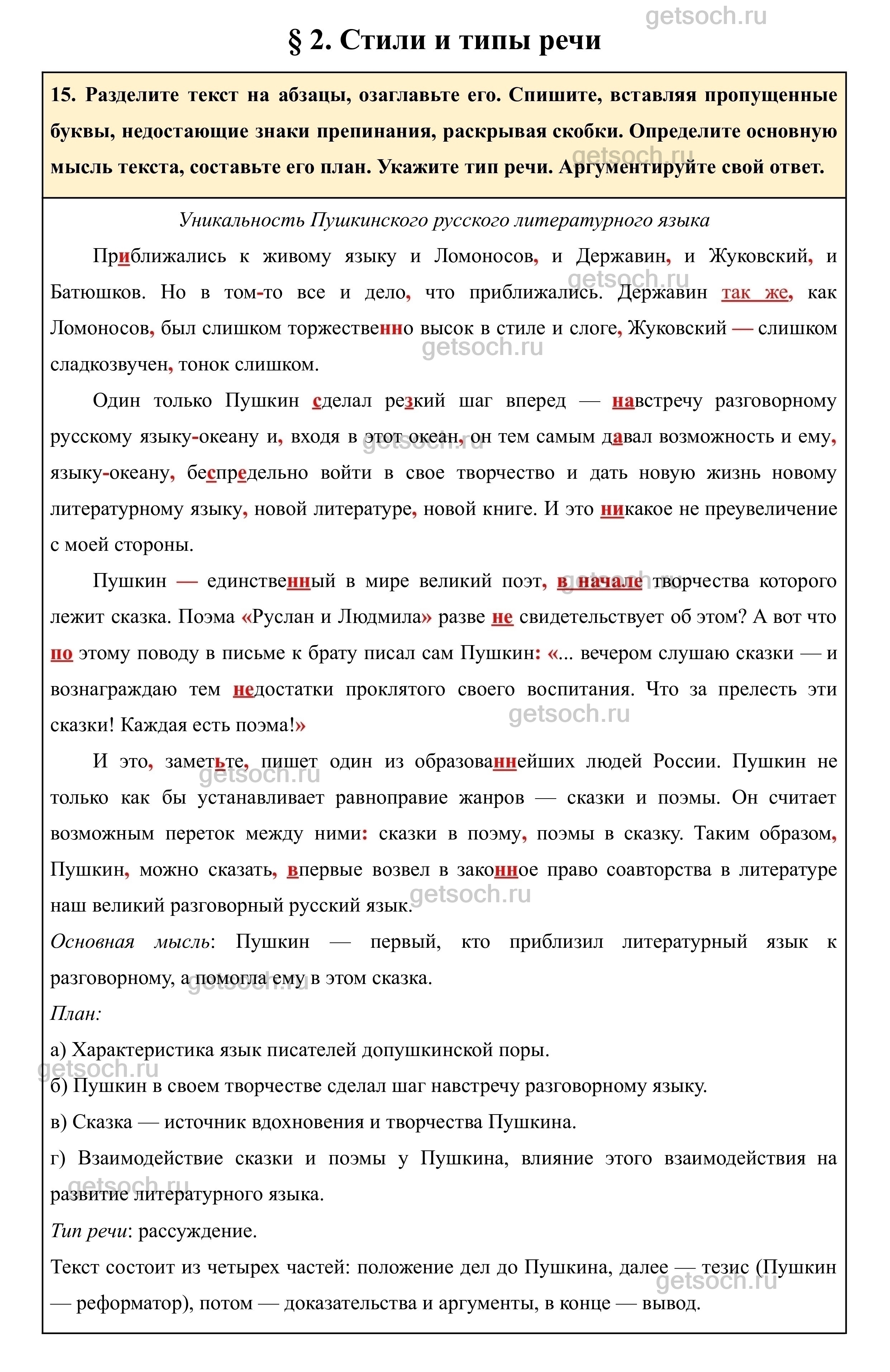 Упражнение 15- ГДЗ по Русскому языку для 10-11 классов Учебник Греков, Крючков, Чешко