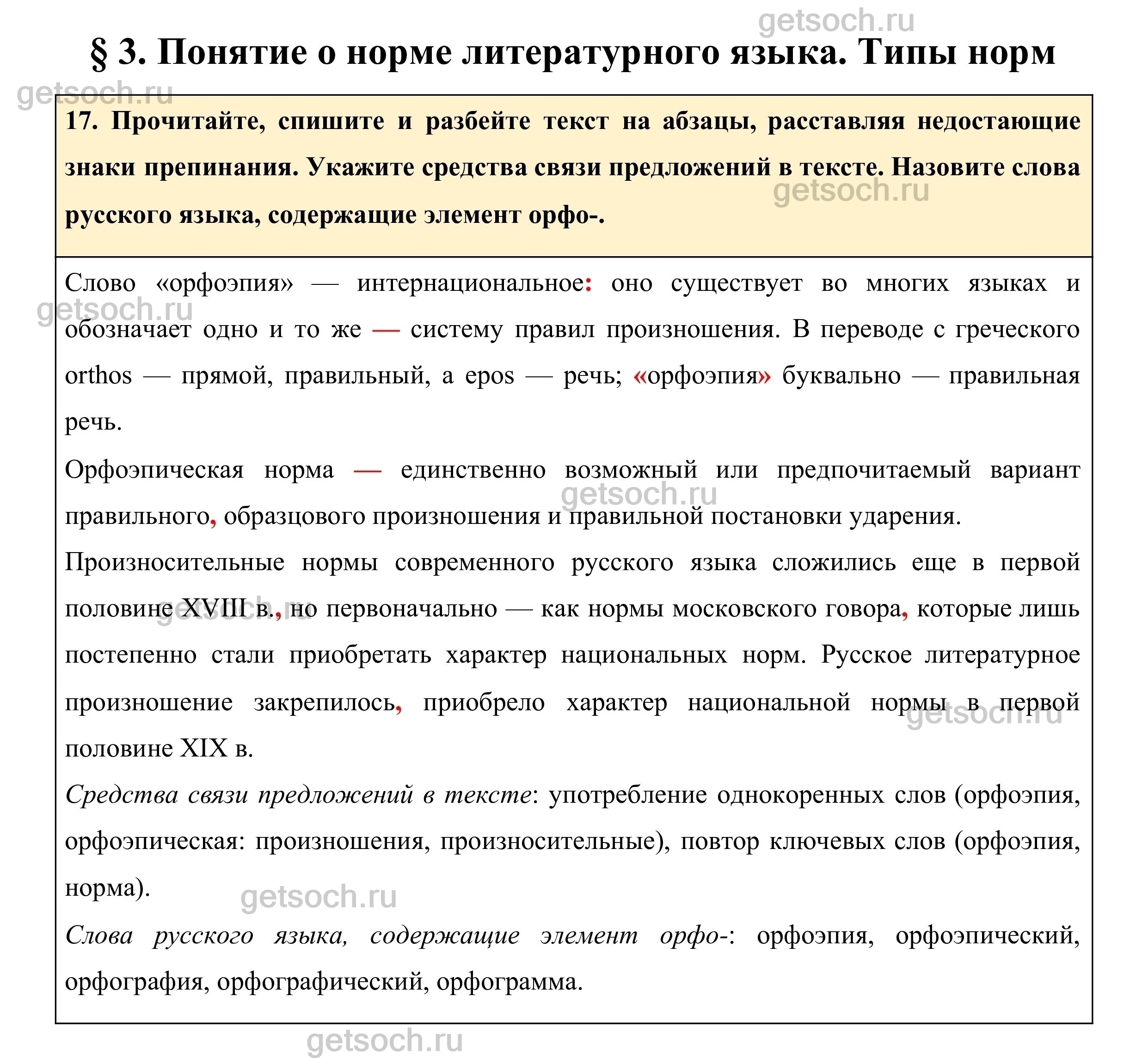 Упражнение 17- ГДЗ по Русскому языку для 10-11 классов Учебник Греков, Крючков, Чешко
