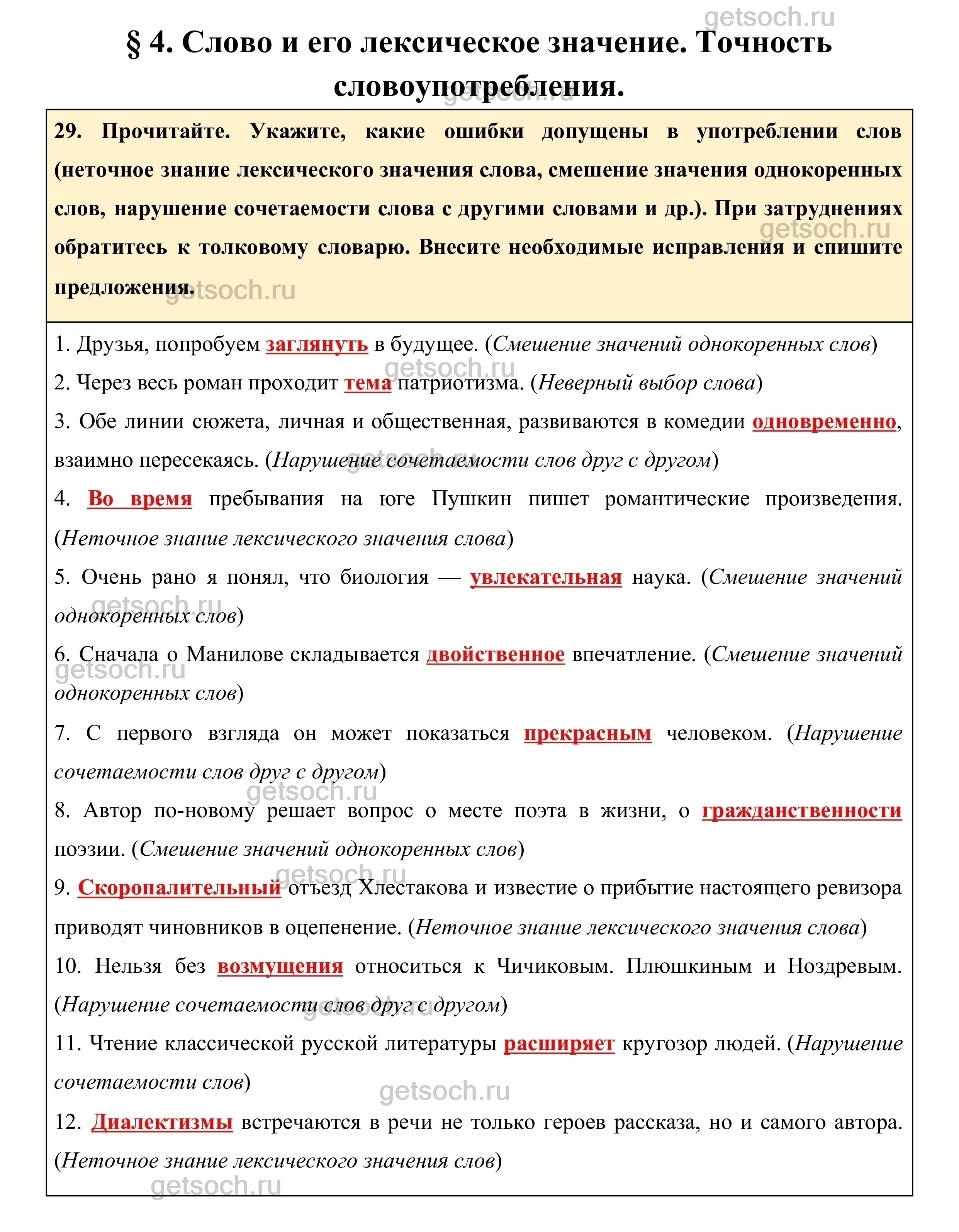 Упражнение 29- ГДЗ по Русскому языку для 10-11 классов Учебник Греков, Крючков, Чешко