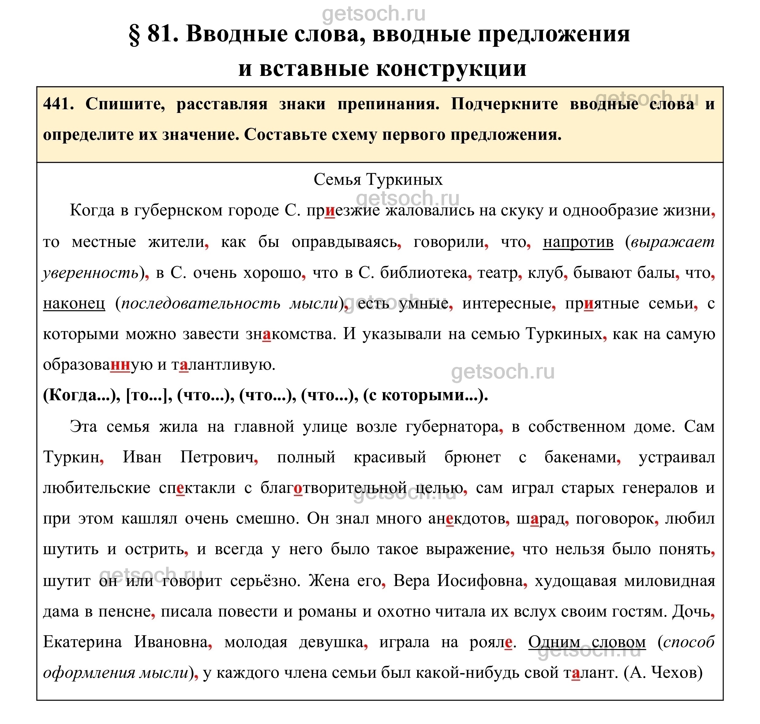 Упражнение 441- ГДЗ по Русскому языку для 10-11 классов Учебник Греков, Крючков, Чешко