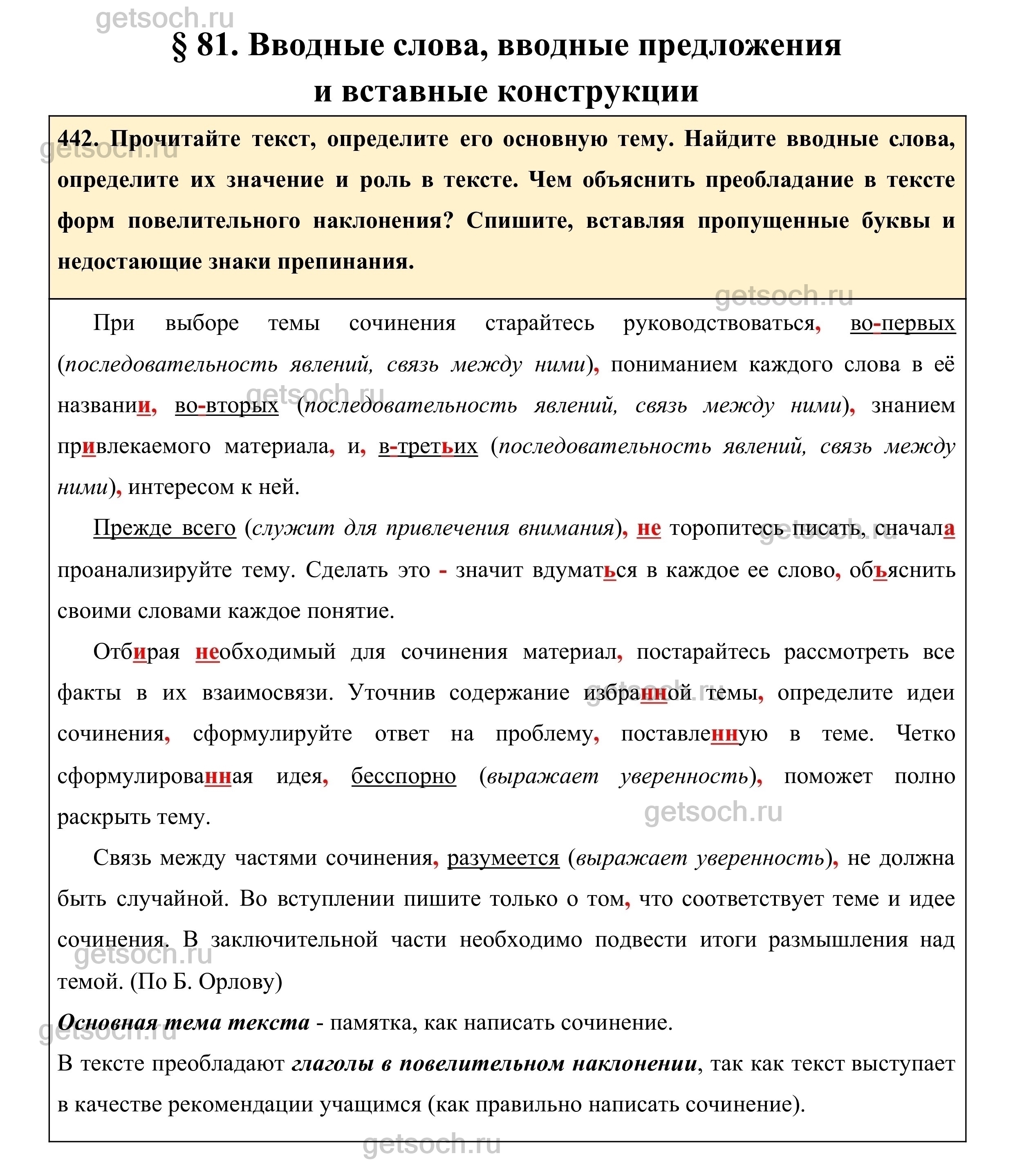 Упражнение 442- ГДЗ по Русскому языку для 10-11 классов Учебник Греков, Крючков, Чешко