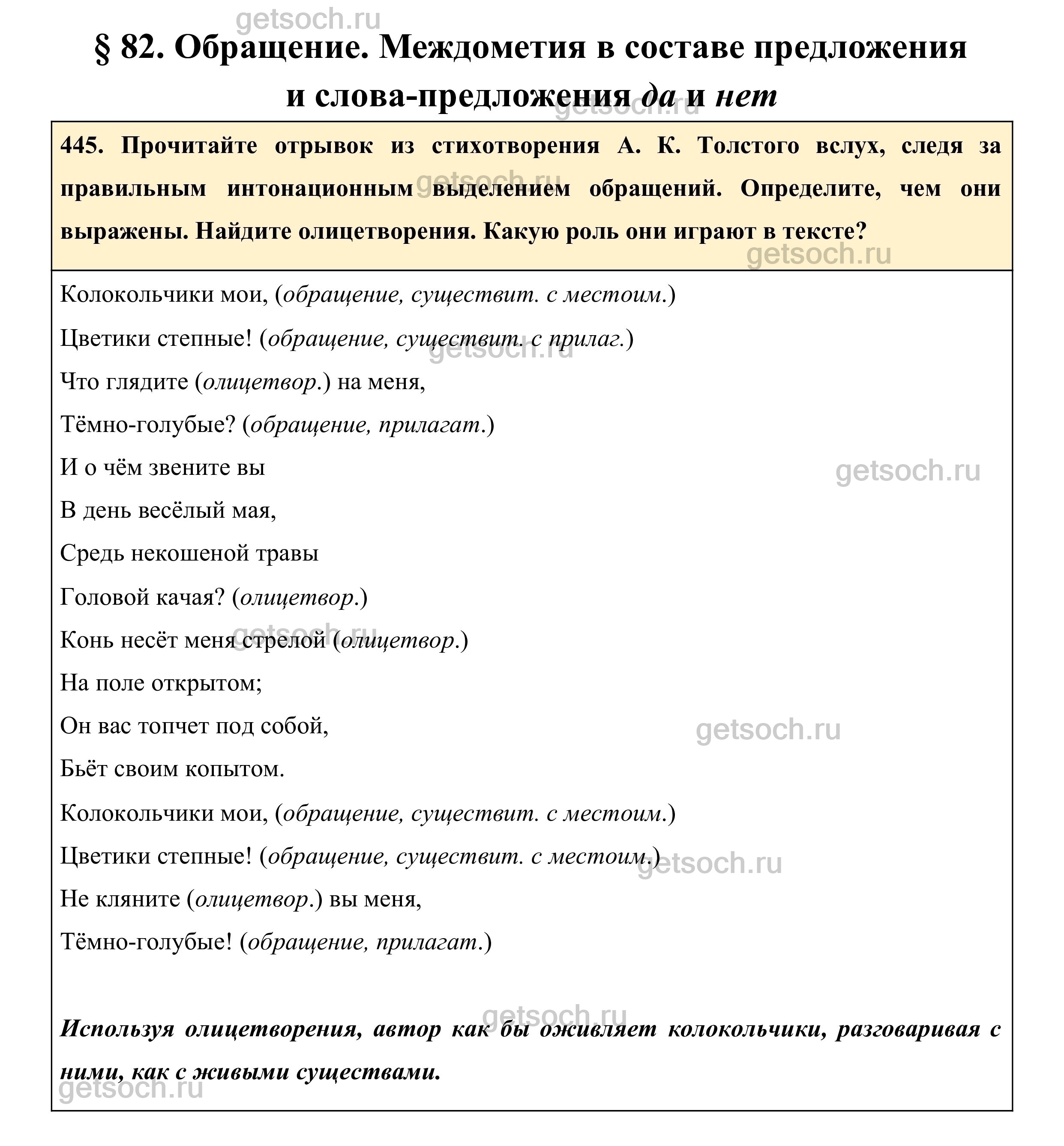 Упражнение 445- ГДЗ по Русскому языку для 10-11 классов Учебник Греков, Крючков, Чешко