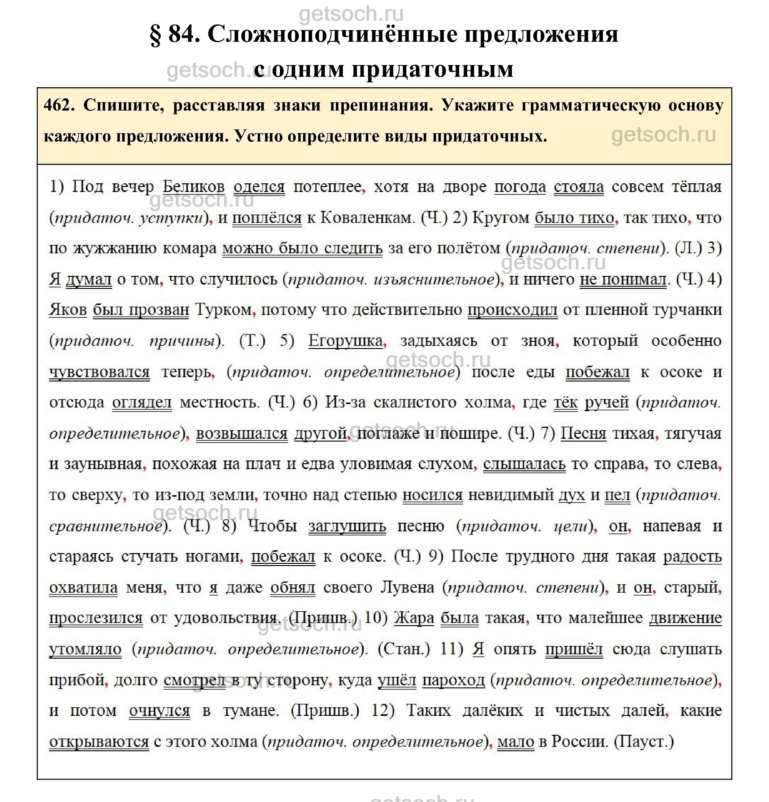 Упражнение 462- ГДЗ по Русскому языку для 10-11 классов Учебник Греков, Крючков, Чешко