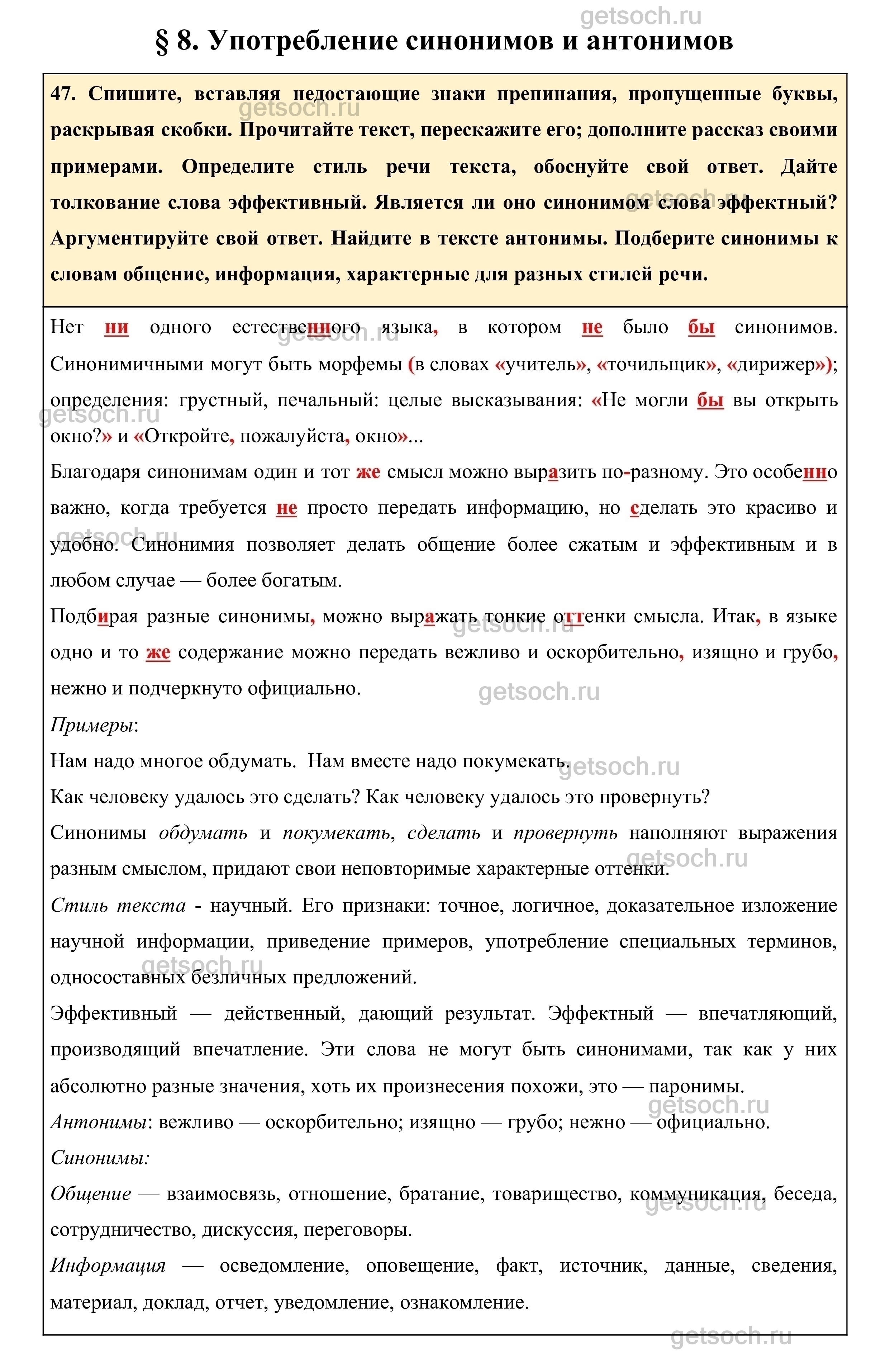 Упражнение 47- ГДЗ по Русскому языку для 10-11 классов Учебник Греков, Крючков, Чешко