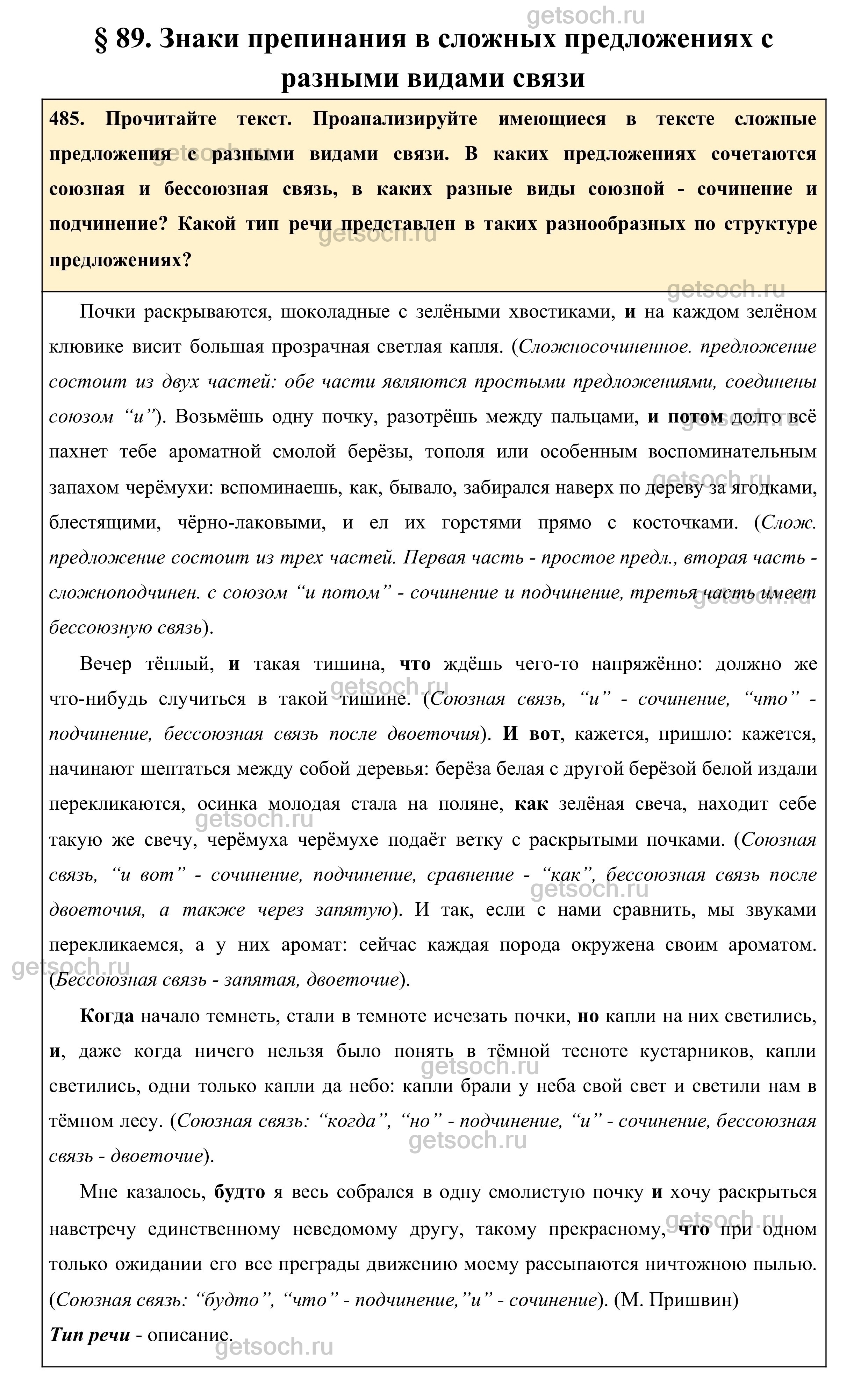 Упражнение 485- ГДЗ по Русскому языку для 10-11 классов Учебник Греков, Крючков, Чешко